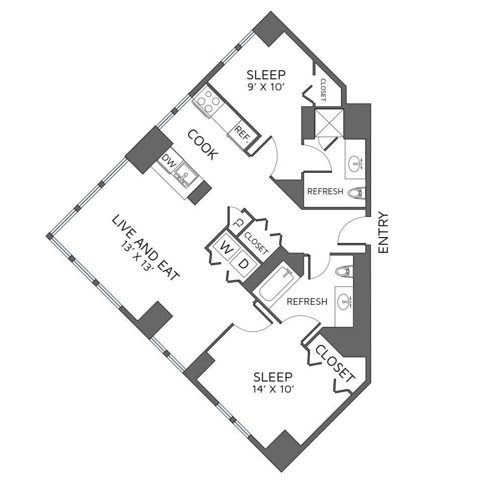 1 Bed, 1 Bath, 859 sq ftAvailable NowLargest 1 BedroomThis is the largest 1 Bedroom at this PropertyModel Gallery