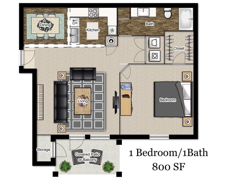 1 Bed, 1 Bath, 800 sq ftAvailable NowModel Gallery