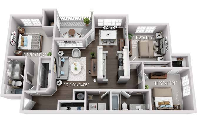Apartment Model: A1From $1,3101 Bedroom, 1 Bath, 703 sq ftAvailable Now![]()