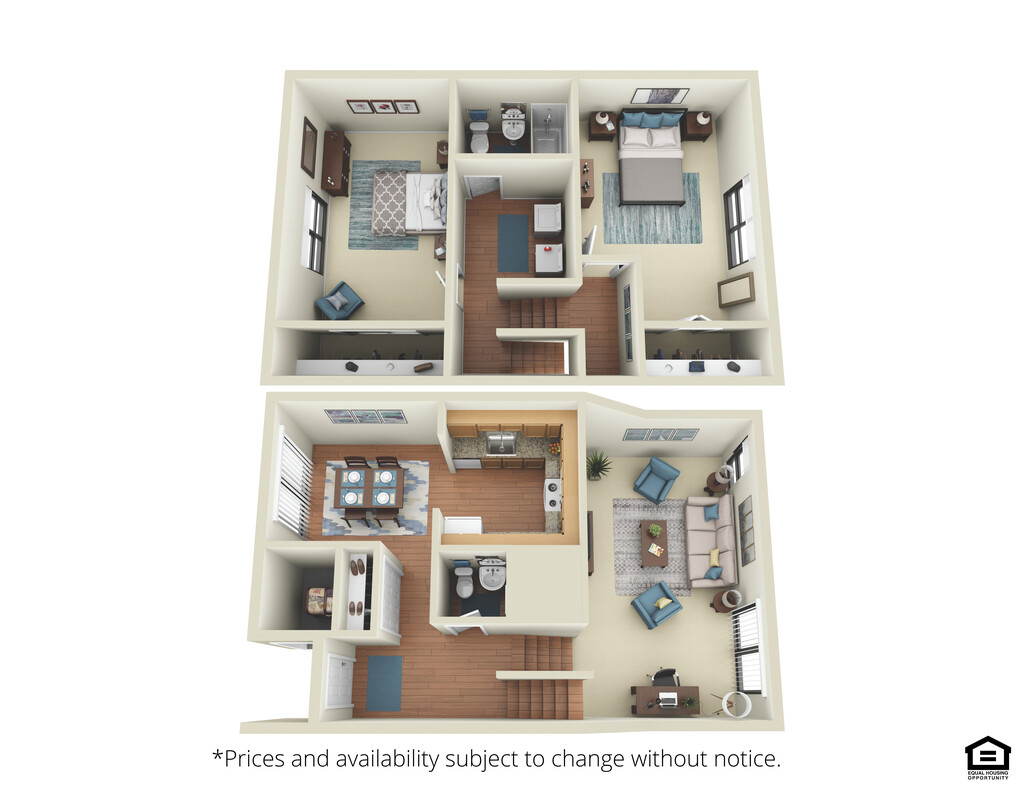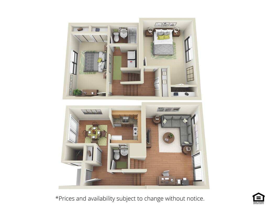 2 Beds, 1.5 Baths, 1200 sq ftModel Gallery