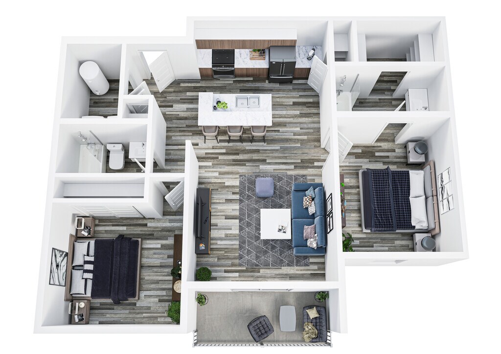 2 Beds, 2 Baths, 968 sq ftModel Gallery