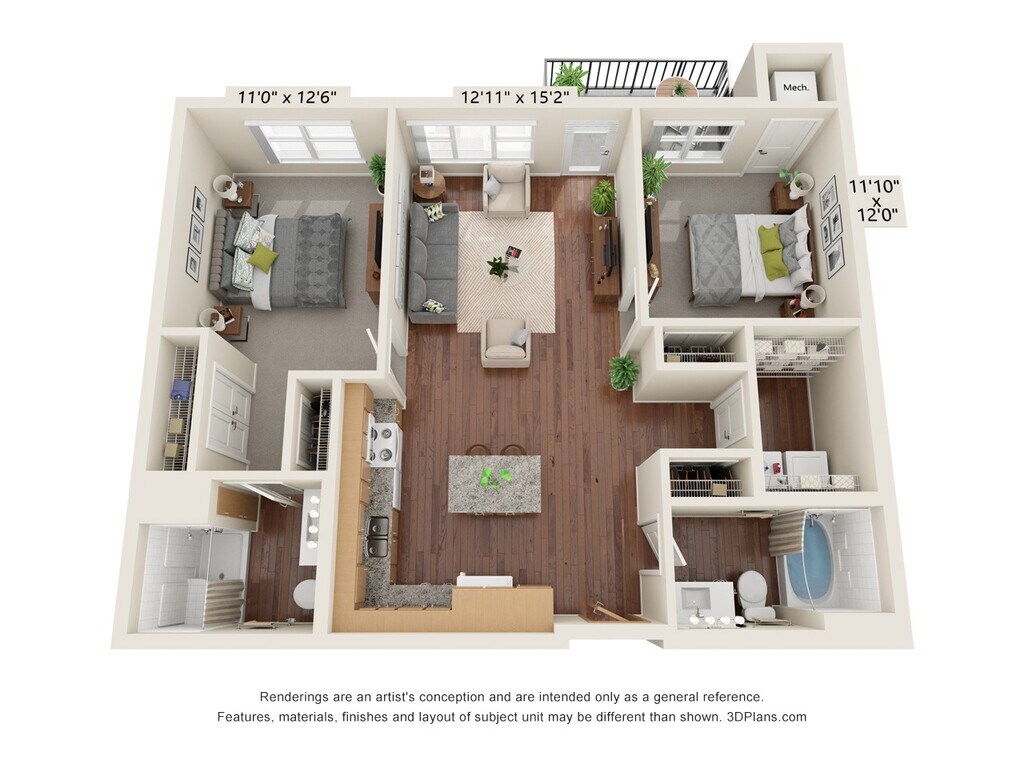 1 Bed, 1 Bath, 723 sq ftPlus FeesAvailable NowModel Gallery