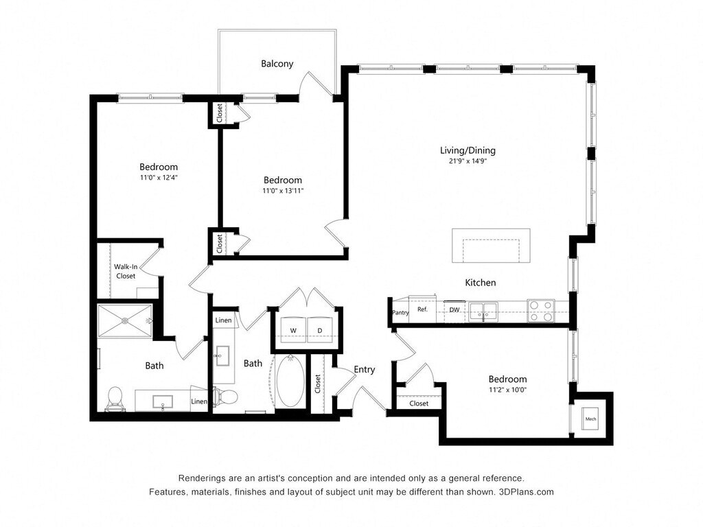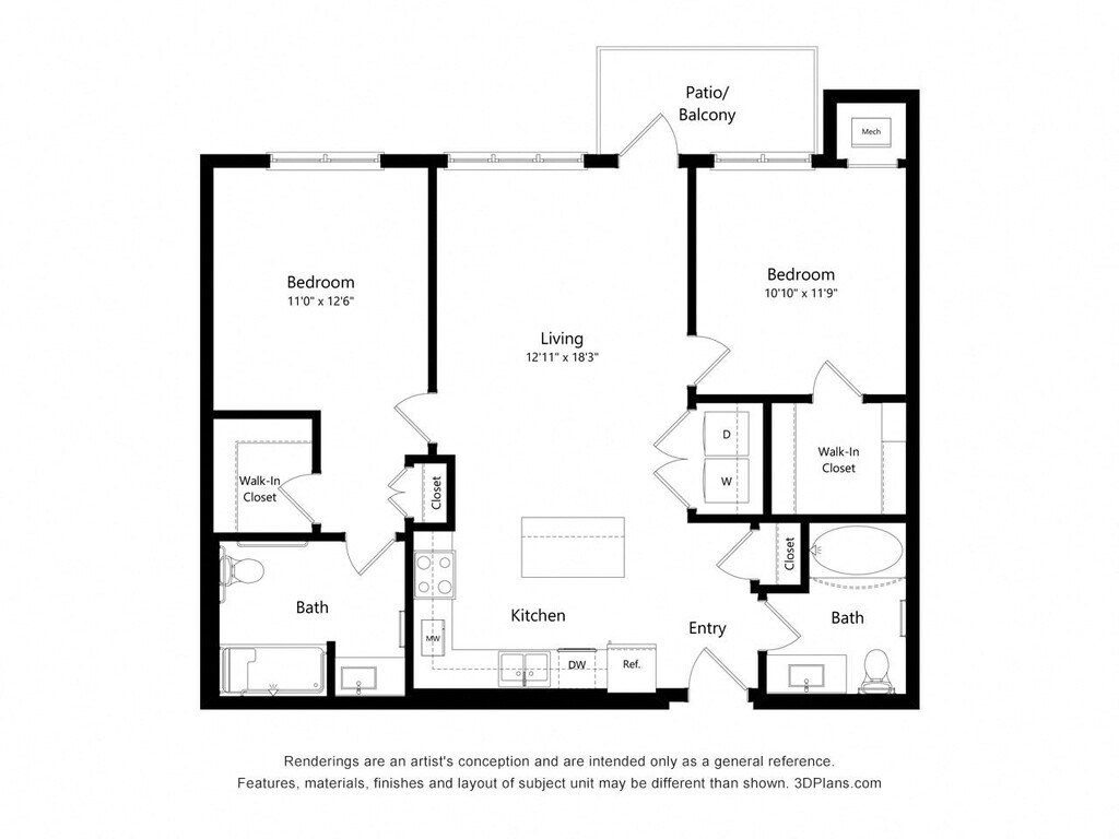 Apartment Model: One Bedroom - E$1,4211 Bedroom, 1 Bath, 723 sq ftAvailable Now![]()