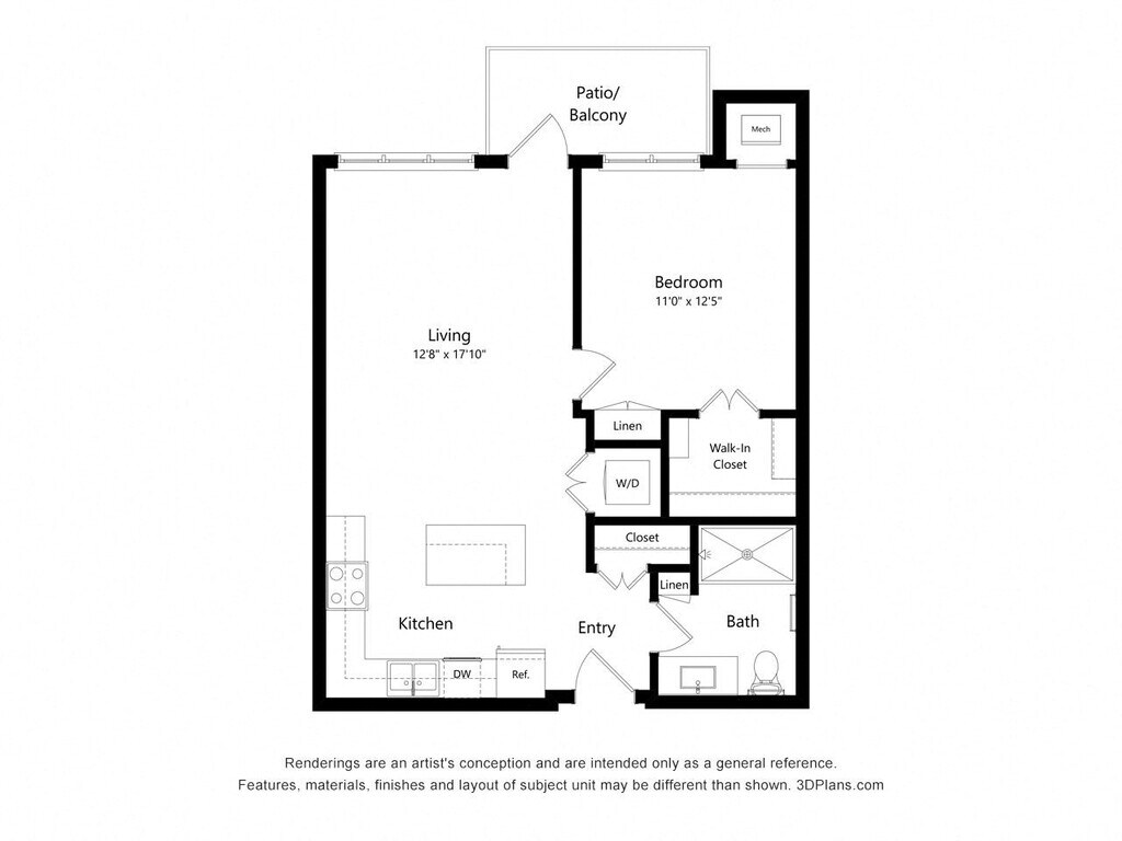 Apartment Model: One Bedroom - AFrom $1,3951 Bedroom, 1 Bath, 681 sq ftAvailable Now![]()