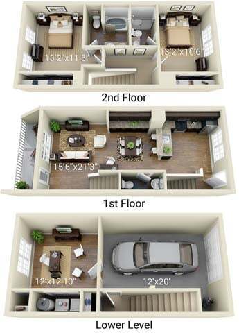 2 Beds, 2.5 Baths, 1269 sq ftAvailable NowModel Gallery