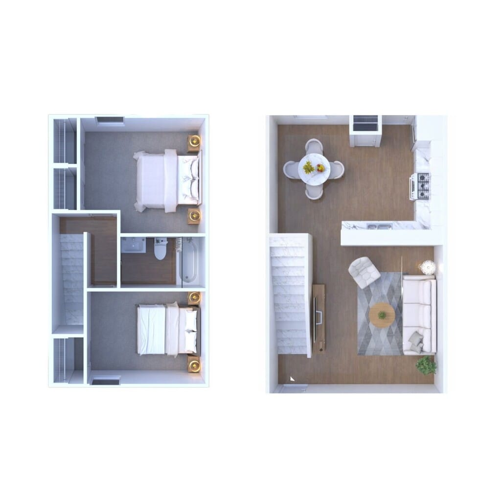 2 Beds, 1 Bath, 880 sq ftModel Gallery