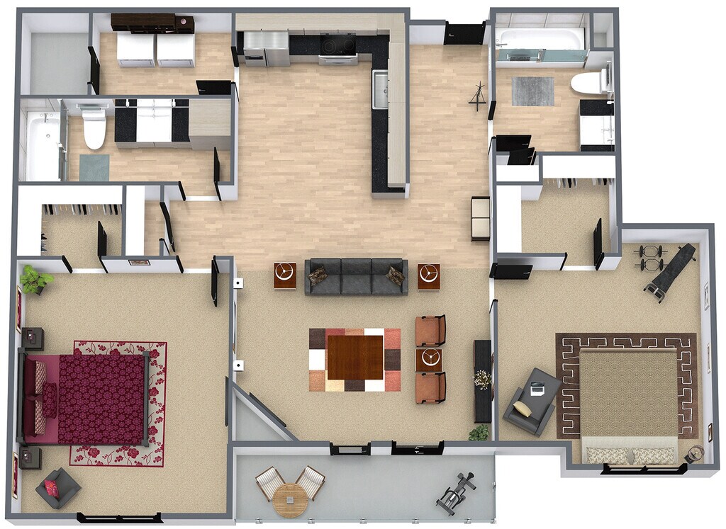 2 Beds, 2 Baths, 1014 sq ftModel Gallery