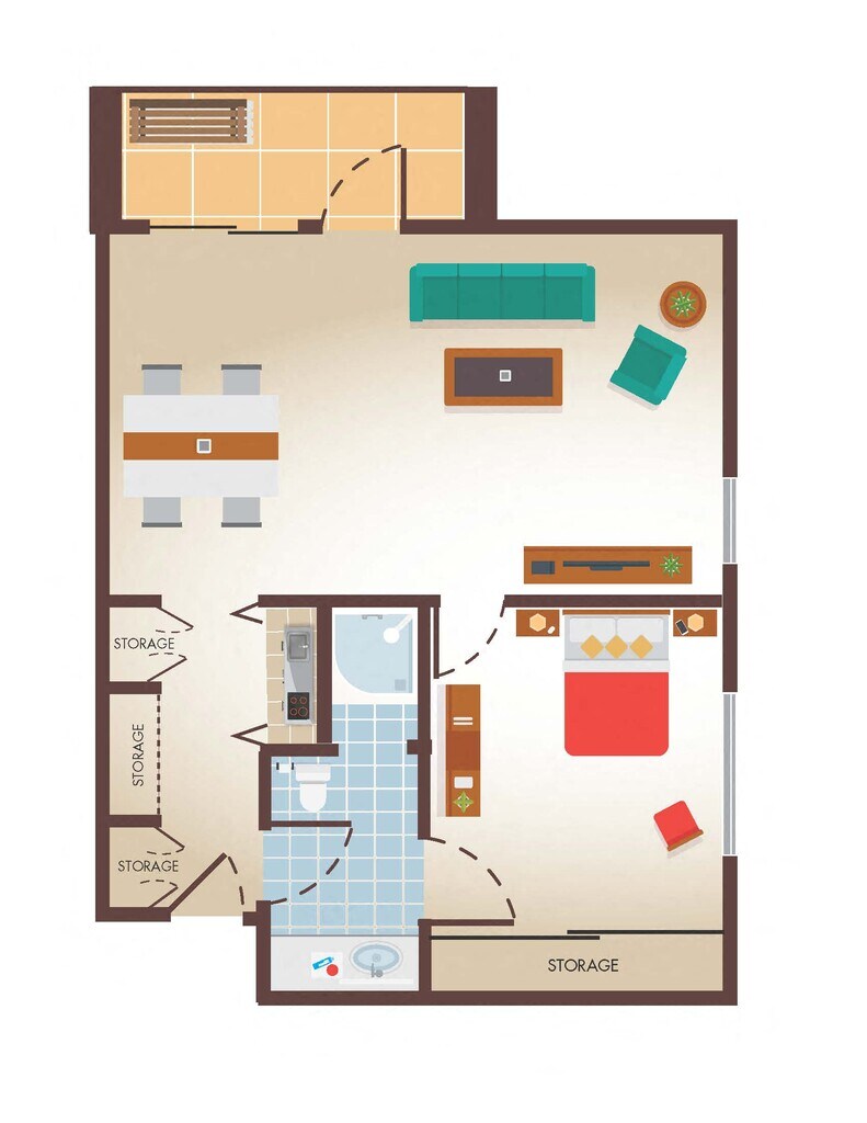 Studio - s1 - Floorplan 5 Studio Upgraded - s1u