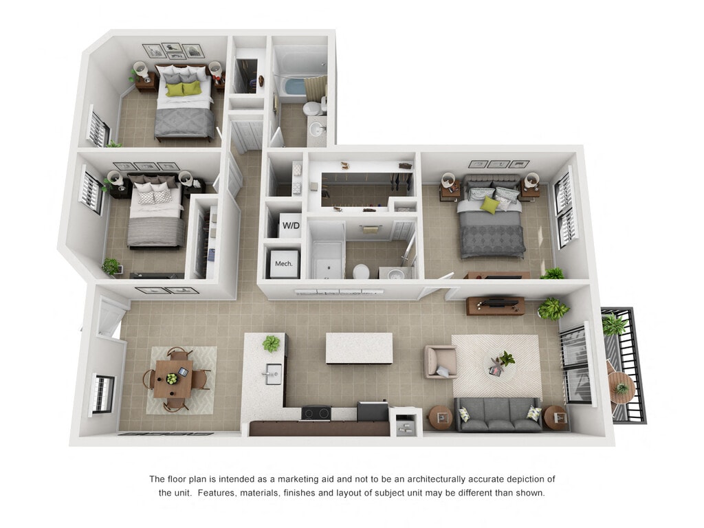 3 Beds, 2 Baths, 1295 sq ftLargest 3 BedroomThis is the largest 3 Bedroom at this PropertyModel Gallery