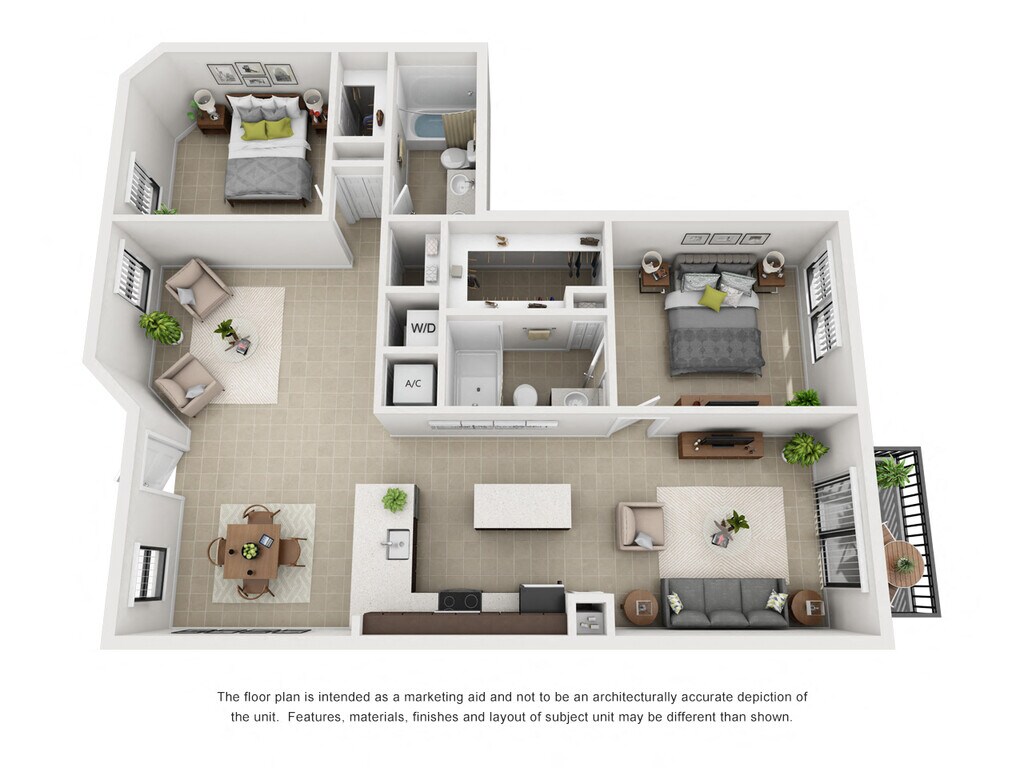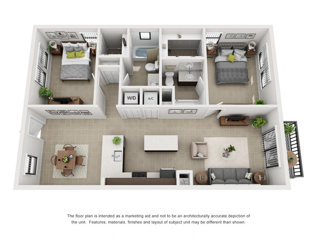 2 Beds, 2 Baths, 1295 sq ftLargest 2 BedroomThis is the largest 2 Bedroom at this PropertyModel Gallery