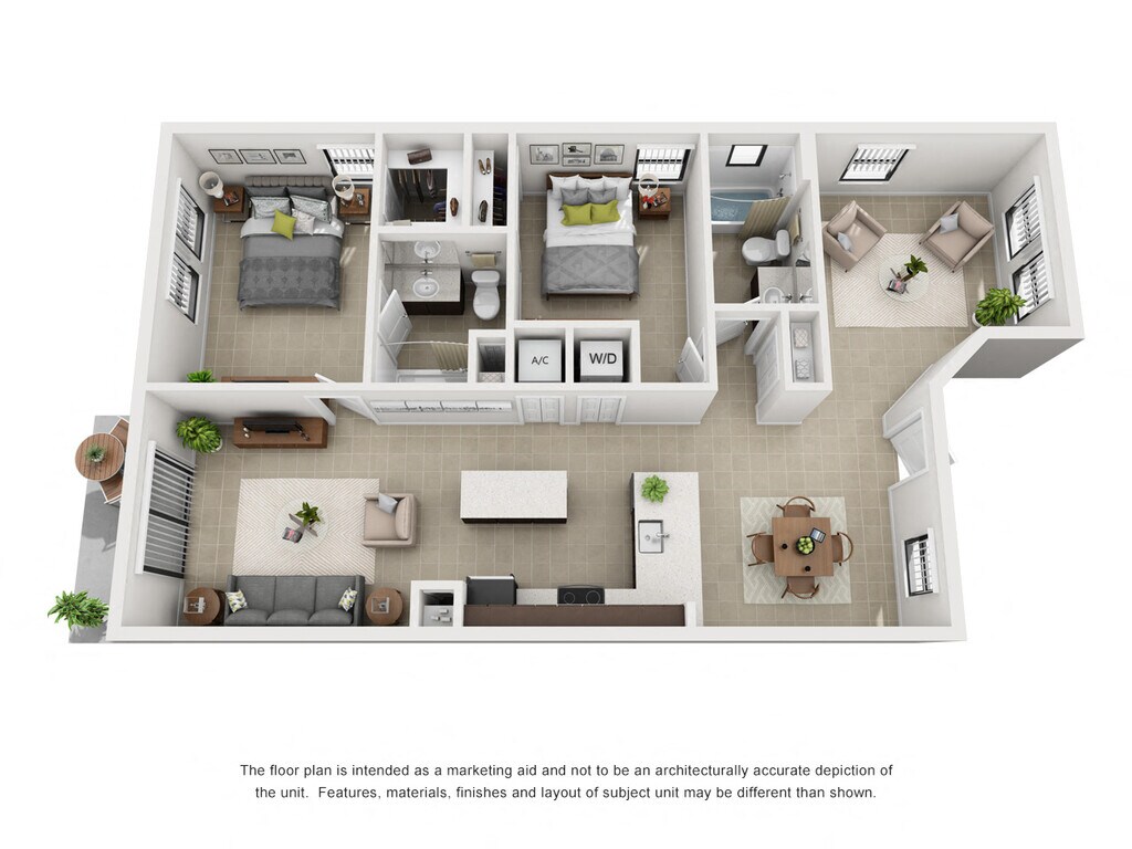 2 Beds, 2 Baths, 1014 sq ftModel Gallery