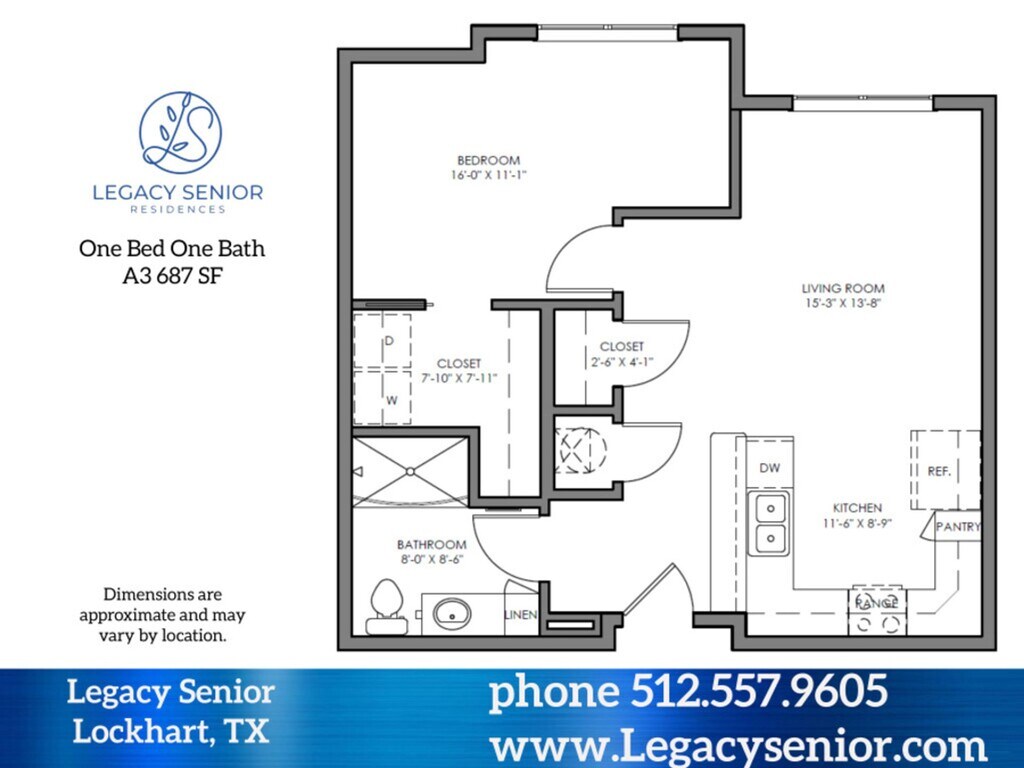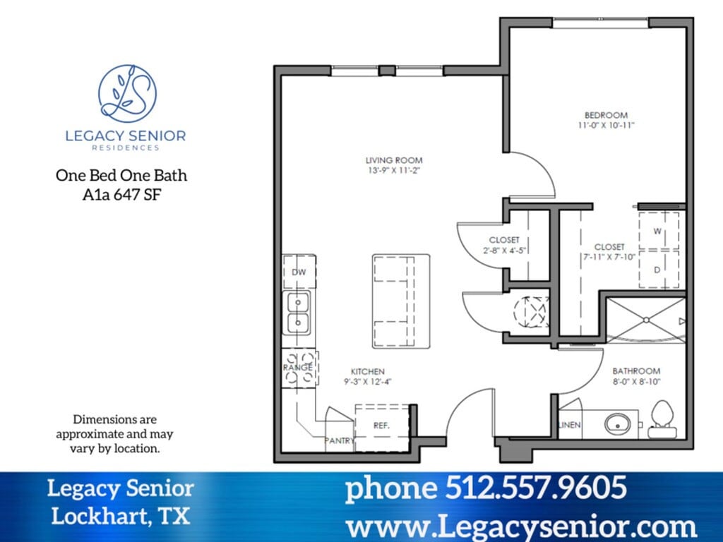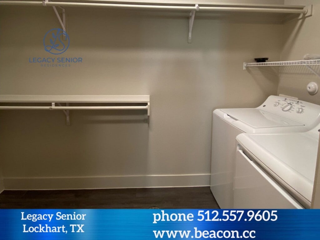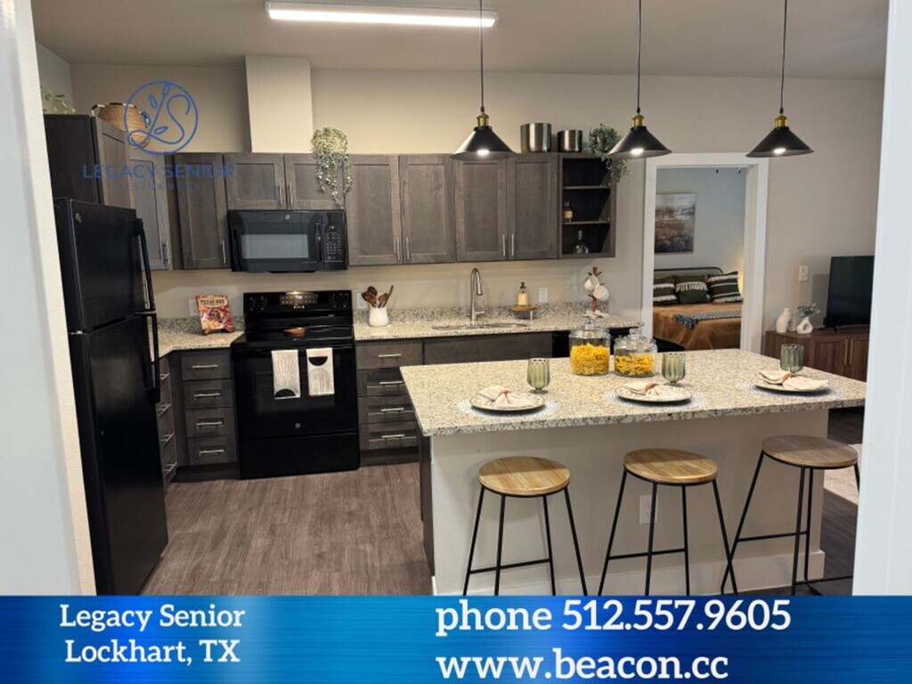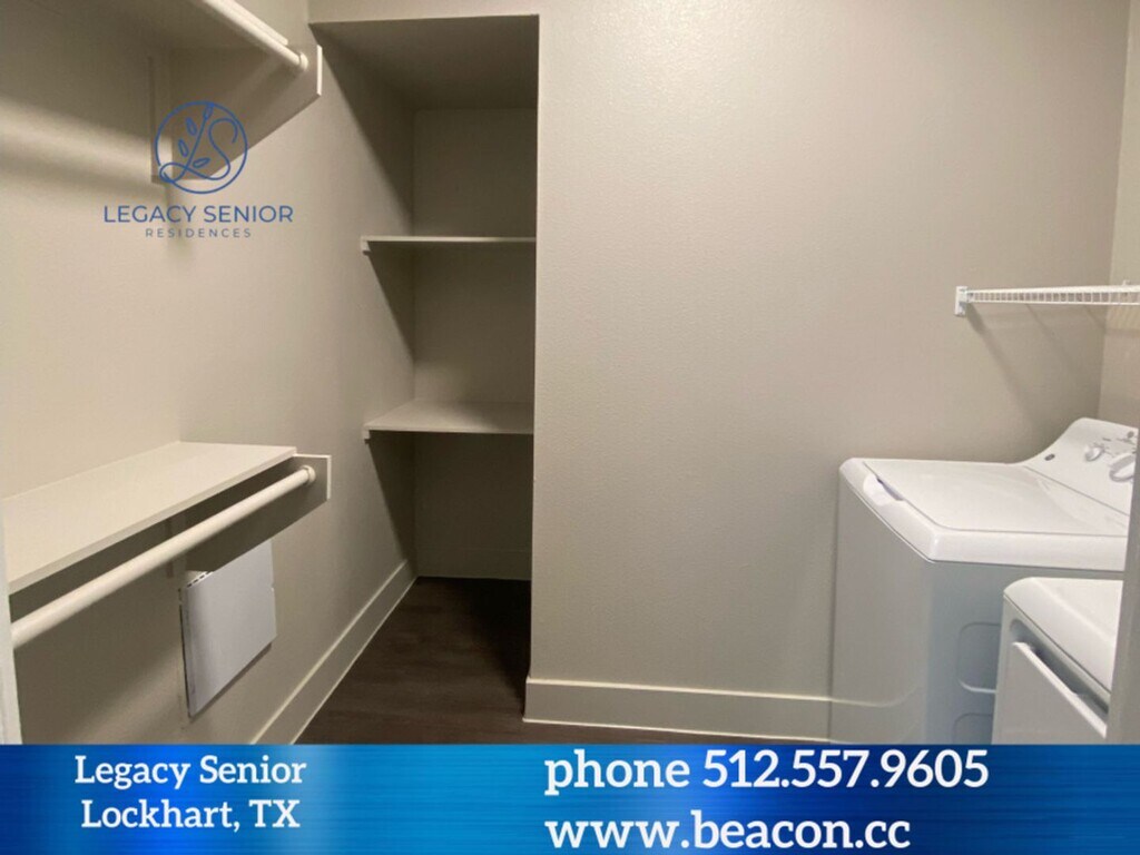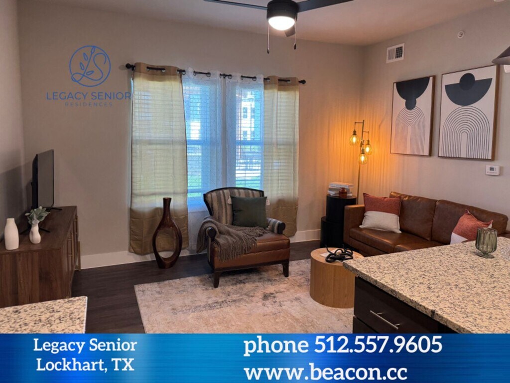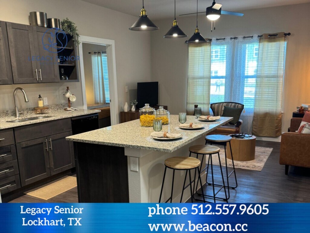 Legacy Lockhart Senior Apartments offers affordable 1 & 2 bedroom apartments for rent. Legacy is an Independent Living Apartment Community for adults 55 years and over with Affordable Housing .... Income limits apply Apartments include FREE UTILITIES! The Community has elevators, controlled access entry, beautiful community rooms, indoor mail delivery, community courtyard and outdoor pool Apartments include full-size washer and dryers, and fully equipped kitchens. Your small pets are welcome. Please contact us to learn more and reserve your apartment today.