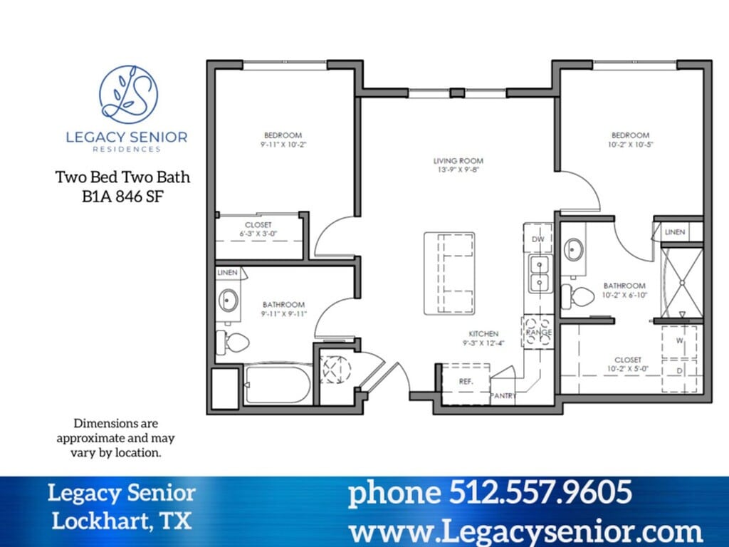 1 Bedroom to 2 Bedroom Apartments at Legacy Lockhart Senior Apartments currently range from $995 to $999