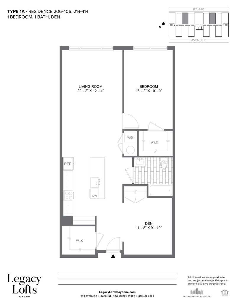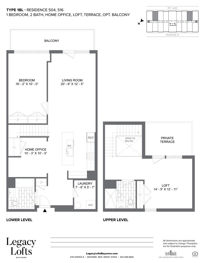 1 Bedroom, 2 Bathrooms + HO and Loft - Floorplan 1 1 Bedroom, 1 Bathroom + Den