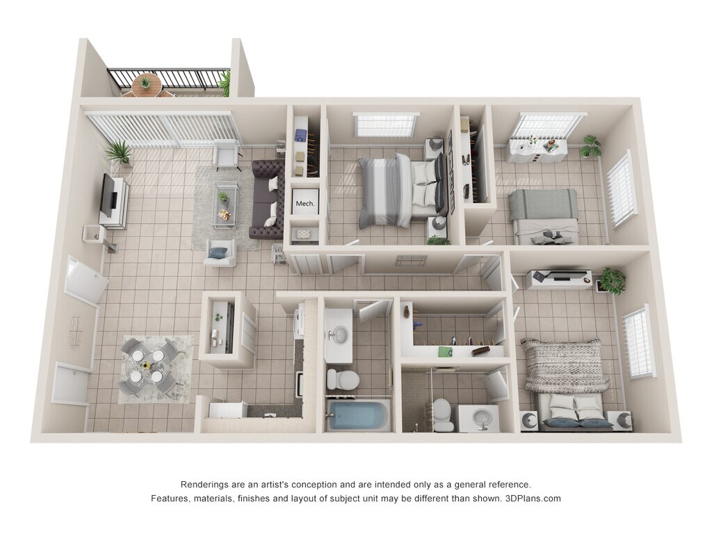 Apartment Model: Model C3 Bedroom, 2 Bath, 1104 sq ftUnavailableModel C - Floorplan 1