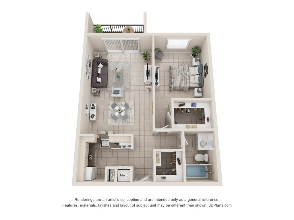 1 Bed, 1 Bath, 754 sq ftModel Gallery