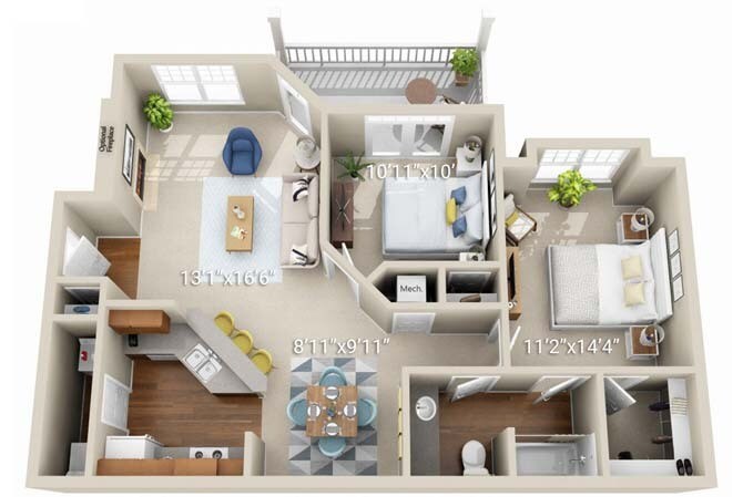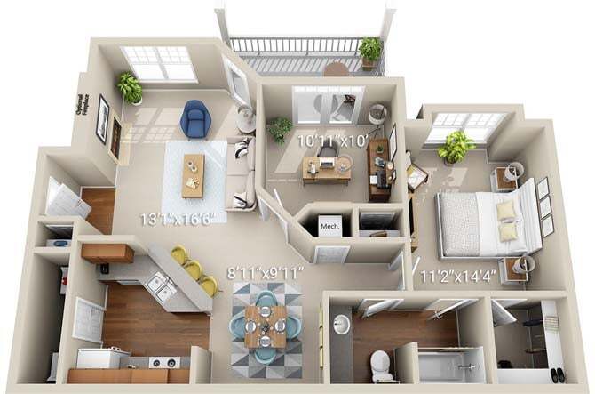 Apartment Model: A3From $1,1651 Bedroom, 1 Bath, 950 sq ftAvailable Now![]()