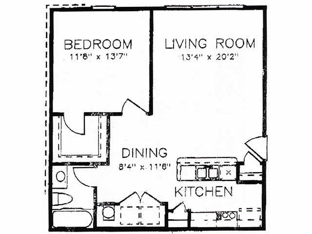 One Bedroom-One Bath - Floorplan 12 2 Bedrooms