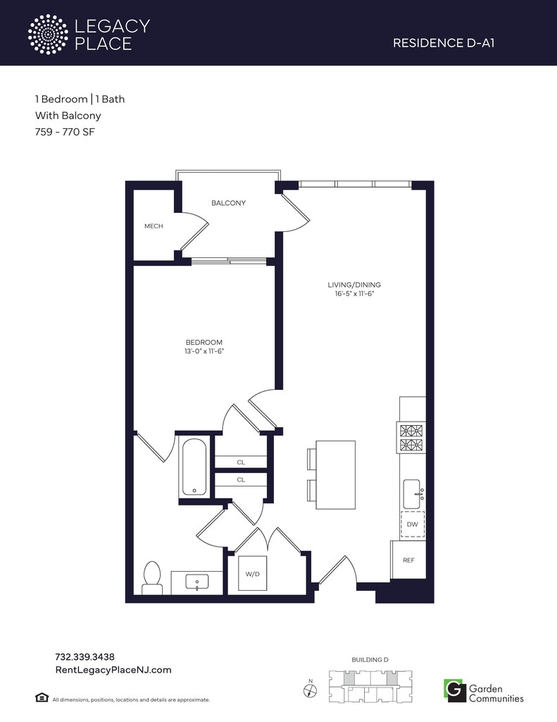 Price Availability Date Unit Sq Ft From $2,295 Call for Availability $3.02/sq.ft. - Residence D-A1 759-770 sq ft Model Amenities and Features