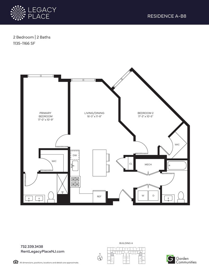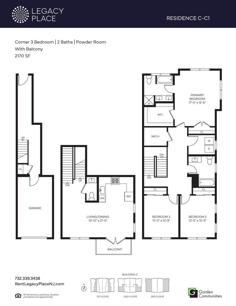 New Construction! Legacy Place is an amenity-rich, pedestrian-friendly rental community in desirable East Brunswick, New Jersey, situated amid picturesque parks, gardens and pathways. From stylish, city-inspired studio, one-, two-, and three-bedroom apartments to stunning two- and three-bedroom residences with private garages, Legacy Place has something for everyone. Featuring gourmet kitchens with custom cabinetry and stainless-steel appliances, sumptuous baths, oversized walk-in closets, and washers and dryers in every home, these spaciously designed residences also offer an array of high-tech features including remote keyless entry, Wi-Fi connectivity, resident-controlled central air and heat, and EV charging stations. Just minutes from Routes 1, 18, I-287 and I-95, Legacy Place offers easy access to virtually everywhere – whether you’re heading to work, school, The Jersey Shore, Newark Liberty International Airport, or New York City. With a resort-style pool and sundeck and a spectacular 5,000 square-foot clubhouse, Legacy Place encourages residents to get the most out of every day. Gather for an outdoor BBQ, treat yourself to a relaxing swim, work-out in a state-of-the-art fitness center, or simply unwind in our luxurious entertainment lounge. Legacy Place is so much more than a stunning new home, it’s a fabulous new lifestyle. And Legacy Place offers extraordinary convenience to East Brunswick’s top-ranked public schools, great local parks and playgrounds, major universities including Rutgers and Princeton, renowned medical institutions like Robert Wood Johnson Medical Center, and some of the very best shopping and dining in the Garden State — including onsite retail shops and services. Legacy Place provides an inviting new rental lifestyle from a developer known for building New Jersey’s best new communities — Garden Communities. For luxury, lifestyle, and location in Middlesex County, Legacy Place is the perfect place to call home. For more information about Legacy Place, contact a leasing representative today.