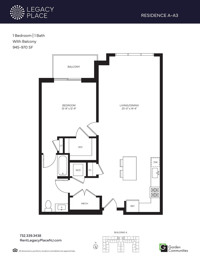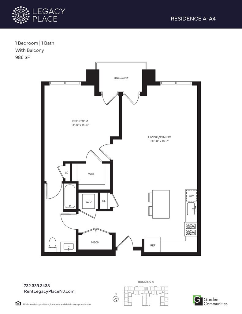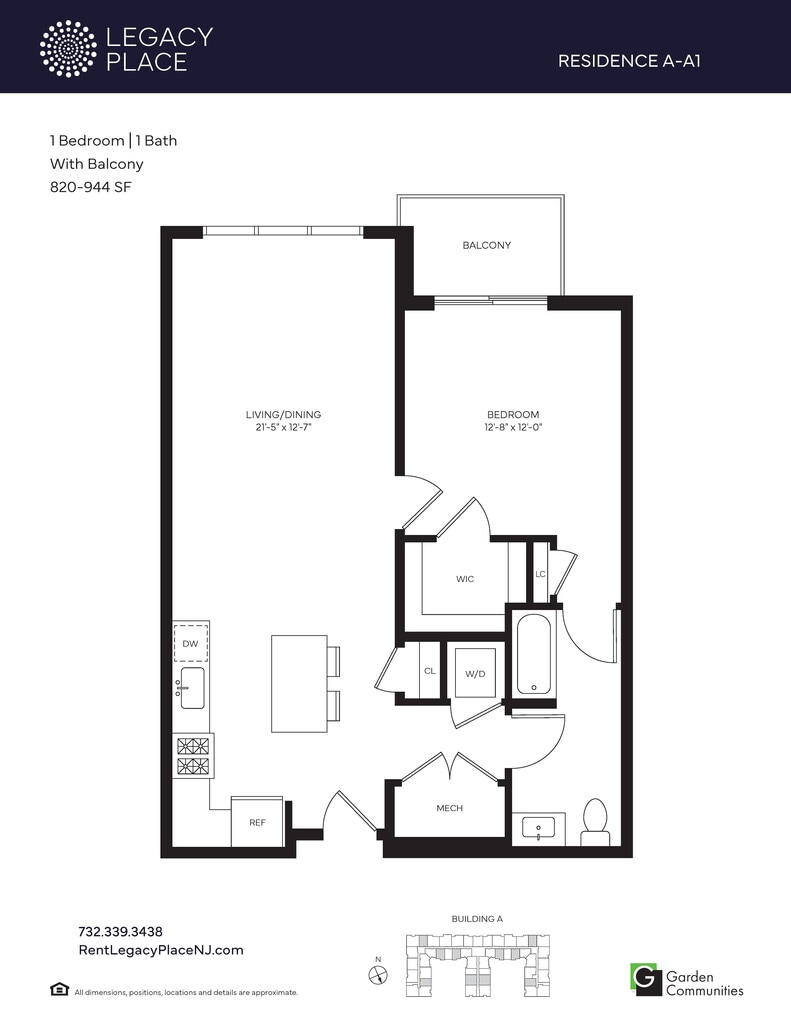 Apartment Model: $3.00/sq.ft. - Residence A-A1From $2,6101 Bedroom, 1 Bath, 820-944 sq ftAvailable December 14, 2025![]()