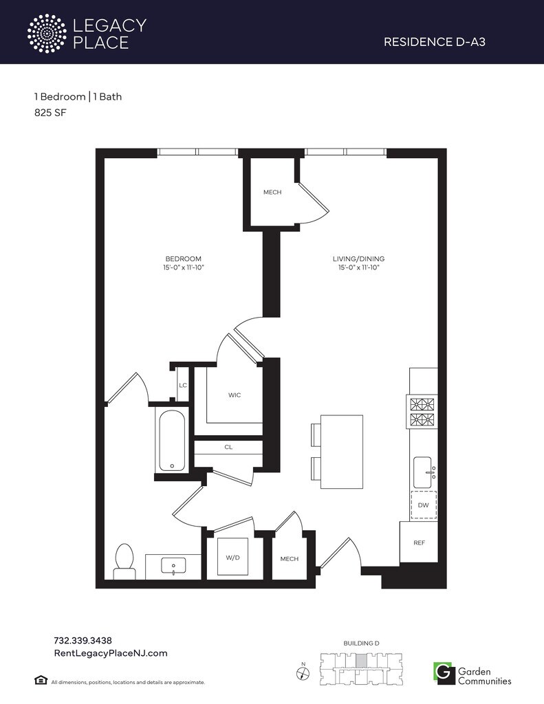 Price Availability Date Unit Sq Ft $2,520 Call for Availability $3.05/sq.ft. - Residence D-A3 825 sq ft Model Amenities and Features
