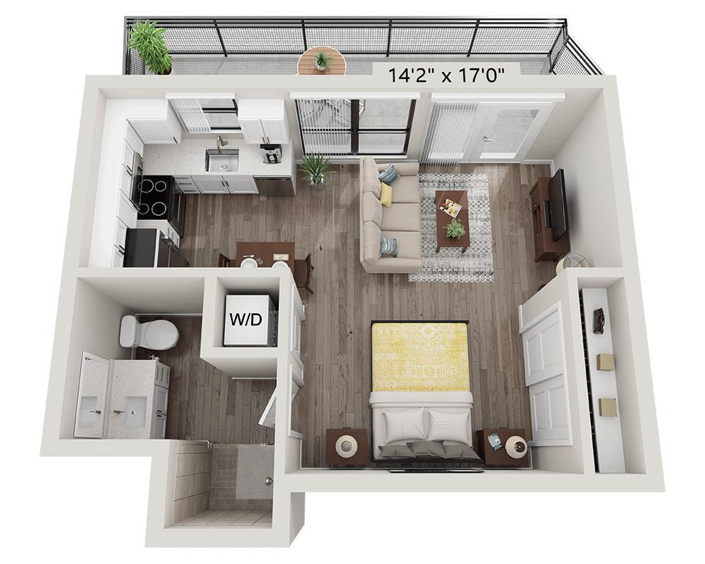 Studio, 1 Bath, 560-660 sq ftLargest StudioThis is the largest Studio at this PropertyModel Gallery
