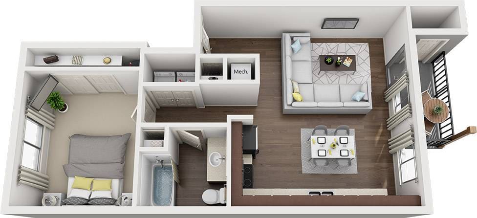 1 Bed, 1 Bath, 762-850 sq ftAvailable Mar 31Largest 1 BedroomThis is the largest 1 Bedroom at this PropertyModel Gallery