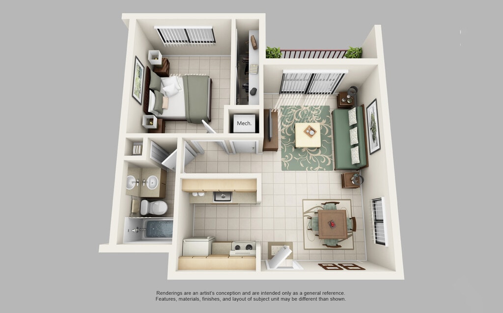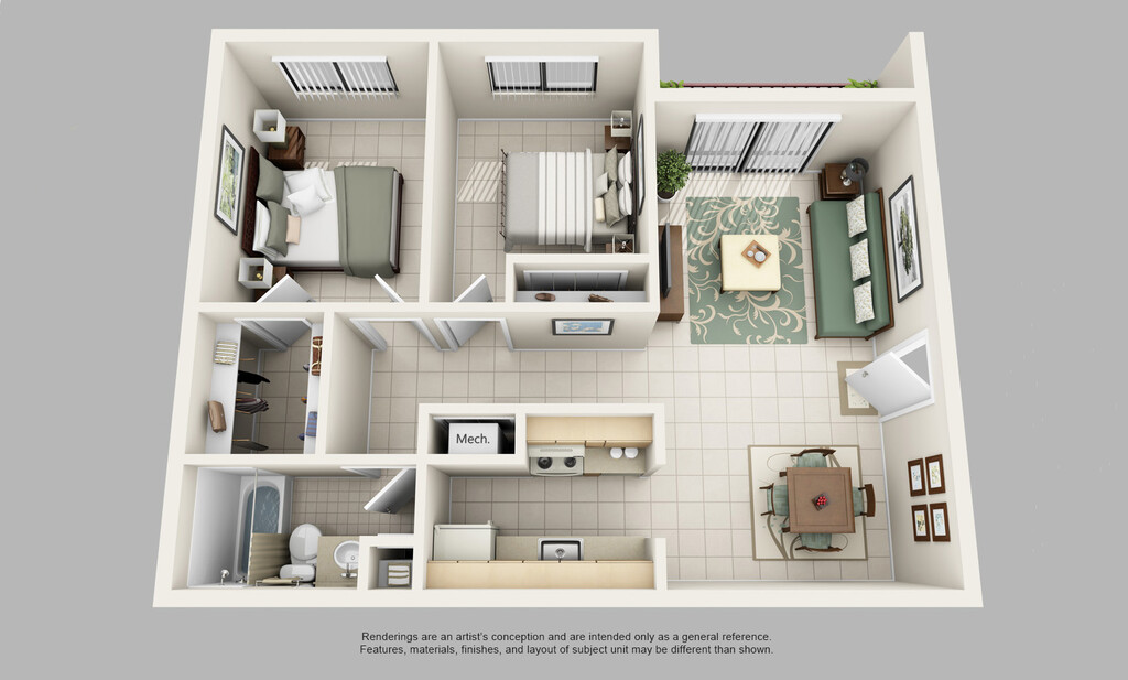 2 Beds, 1 Bath, 895 sq ftAvailable NowModel Gallery