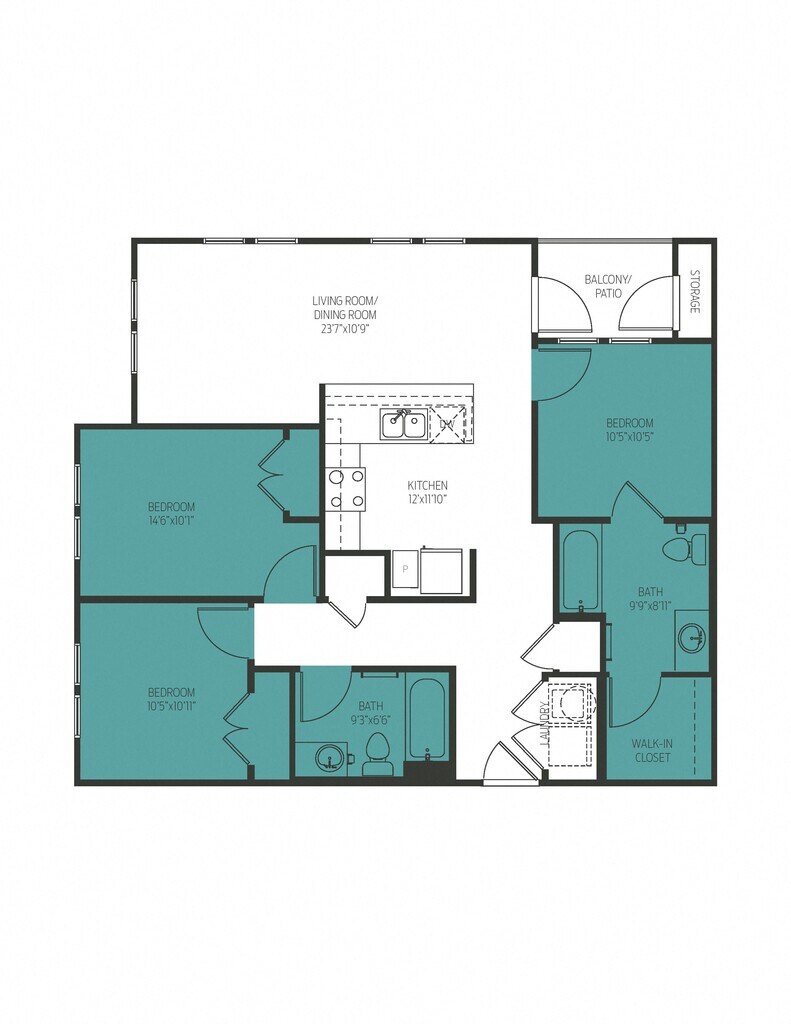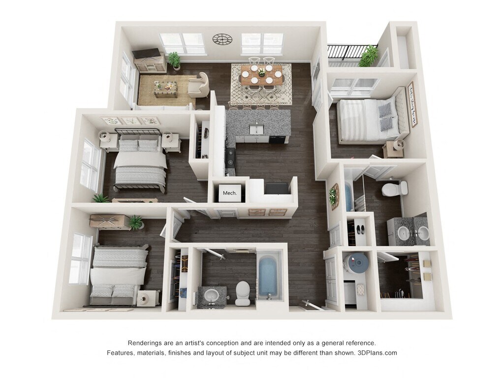 3 Beds, 2 Baths, 1050 sq ftModel Gallery