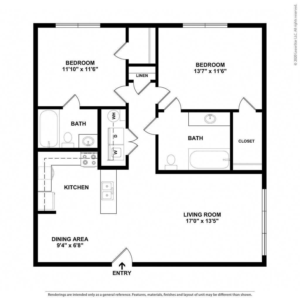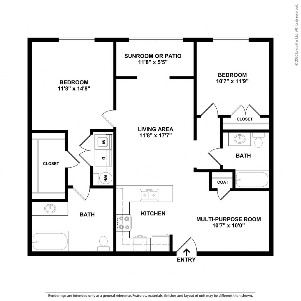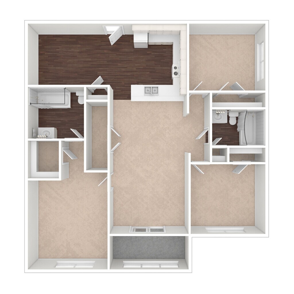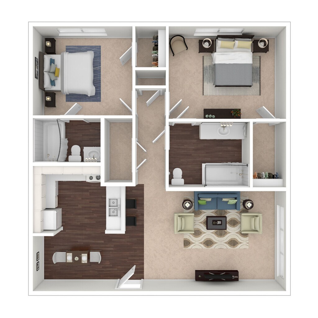 2 Beds, 2 Baths, 1123-1188 sq ftLargest 2 BedroomThis is the largest 2 Bedroom at this PropertyModel Gallery