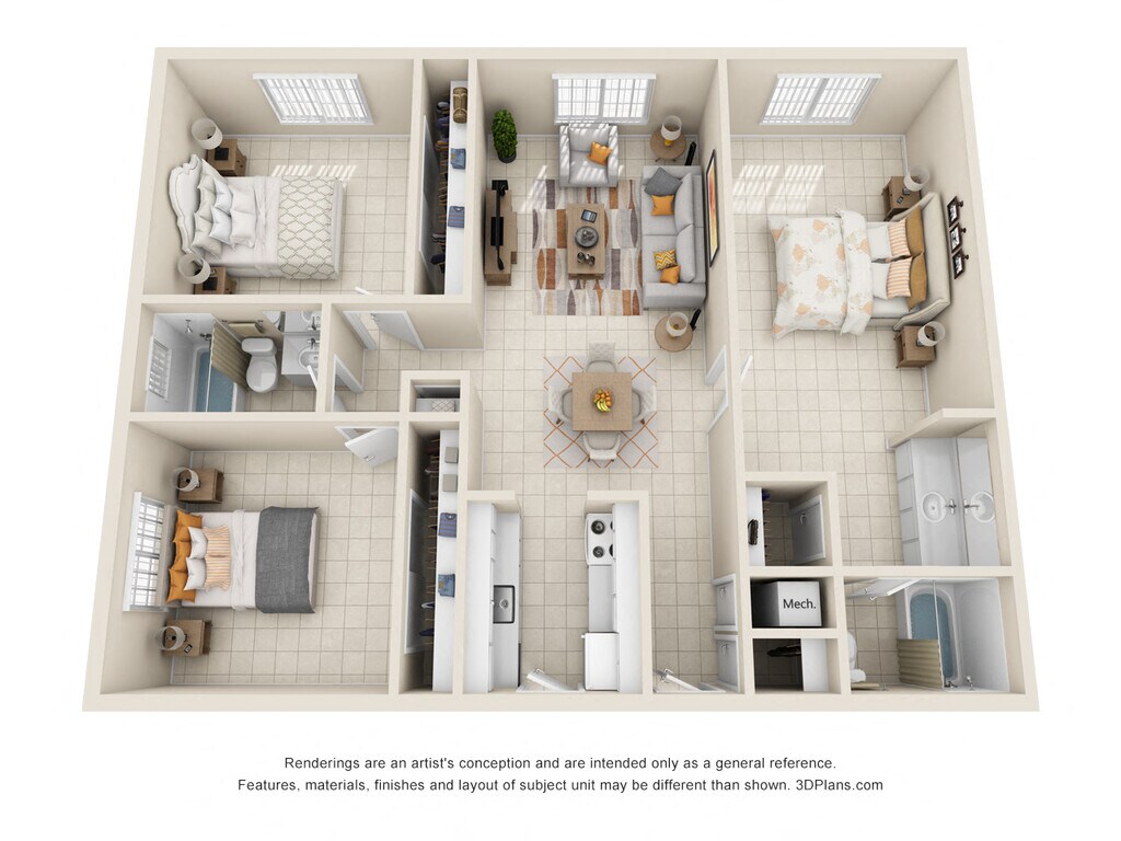 Apartment Model: Model A3From $1,7351 Bedroom, 1 Bath, 630 sq ftUnavailable![]()