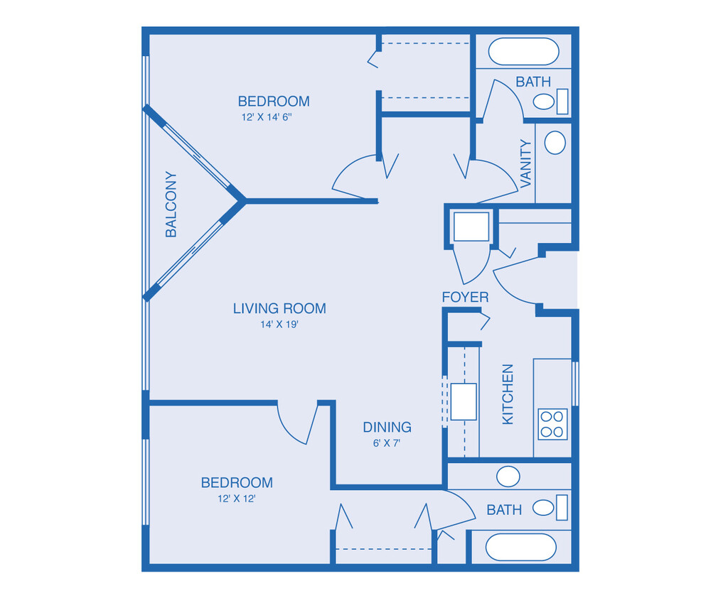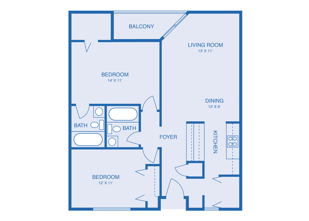 2 Beds, 2 Baths, 1092 sq ftLargest 2 BedroomThis is the largest 2 Bedroom at this PropertyModel Gallery