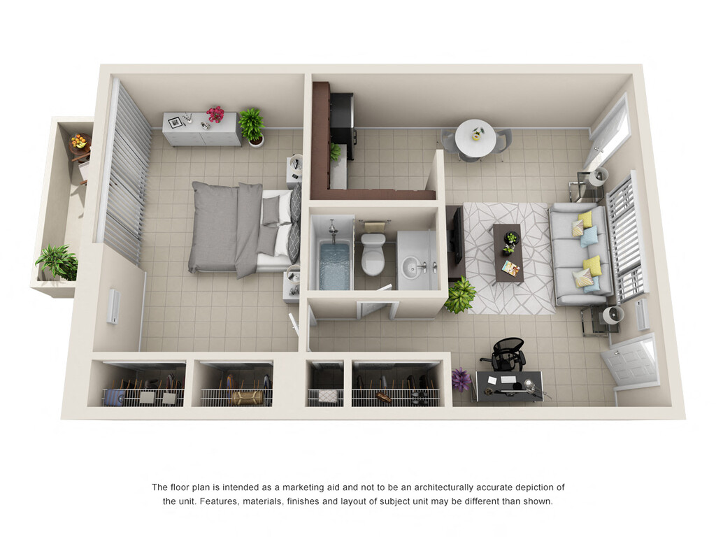 1 Bed, 1 Bath, 596 sq ftAvailable NowModel Gallery