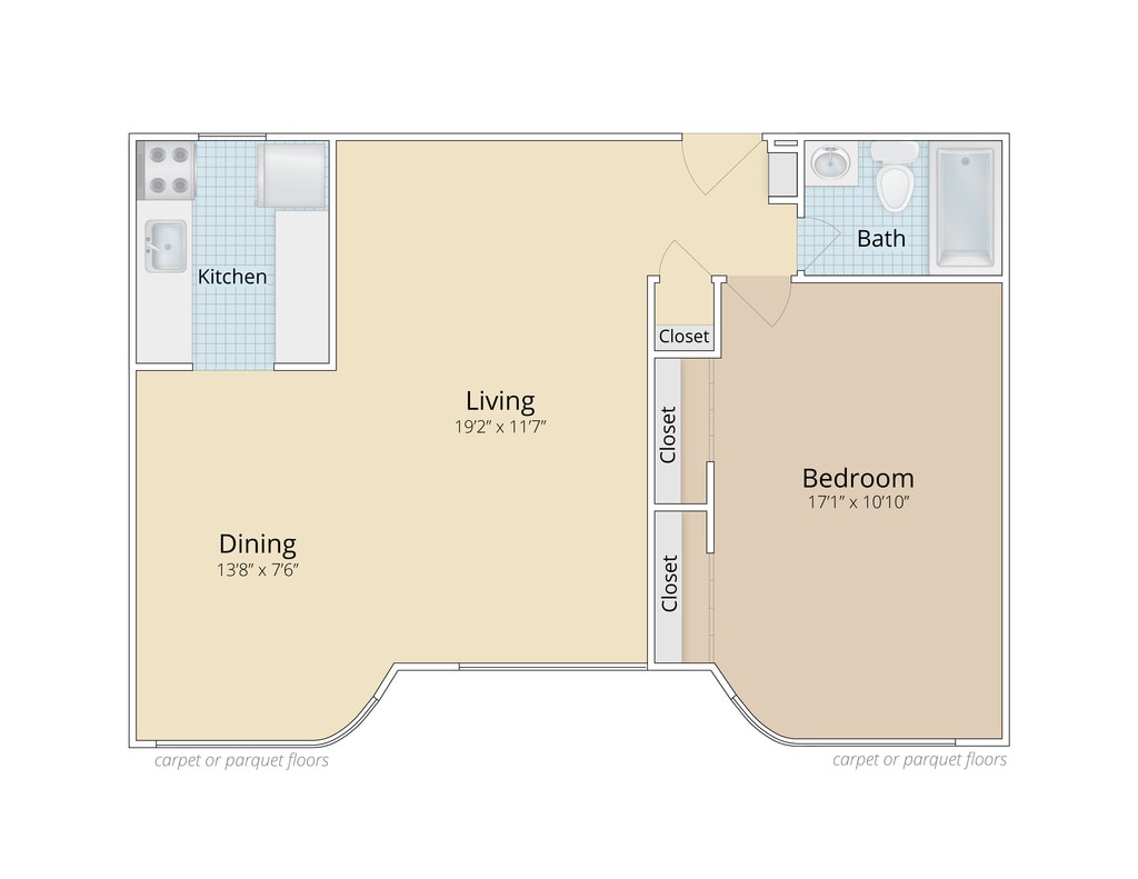 Studio, 1 Bath, 420 sq ftAvailable Oct 7Model Gallery