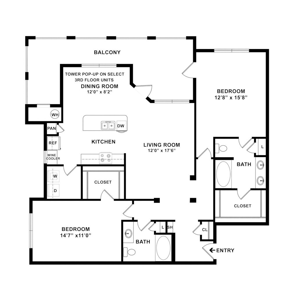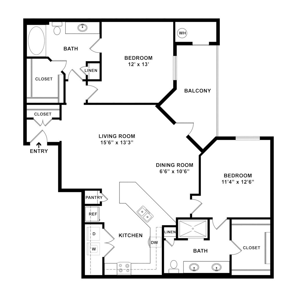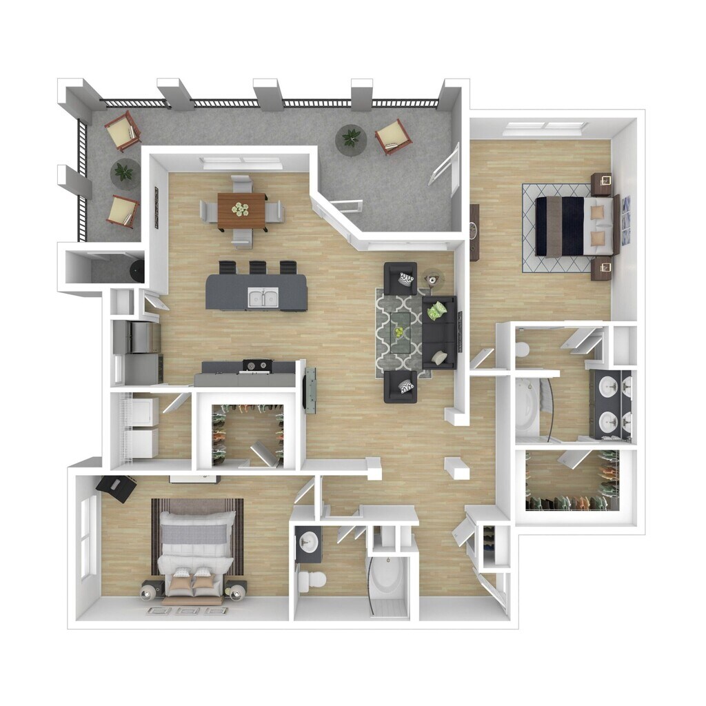 2 Beds, 2 Baths, 1338 sq ftAvailable NowLargest 2 BedroomThis is the largest 2 Bedroom at this PropertyModel Gallery