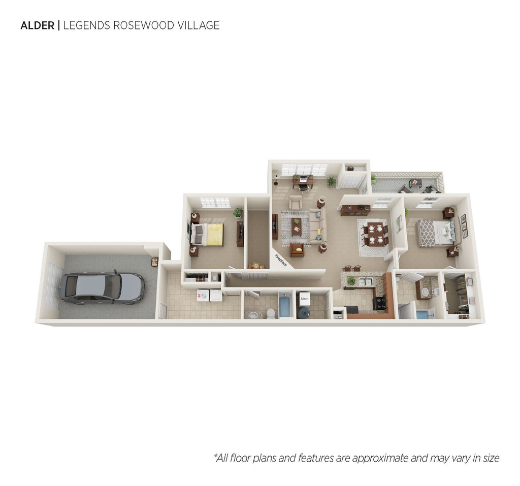 2 Bedrooms at Legends Rosewood Village currently start from $1,886. Call today for more info!