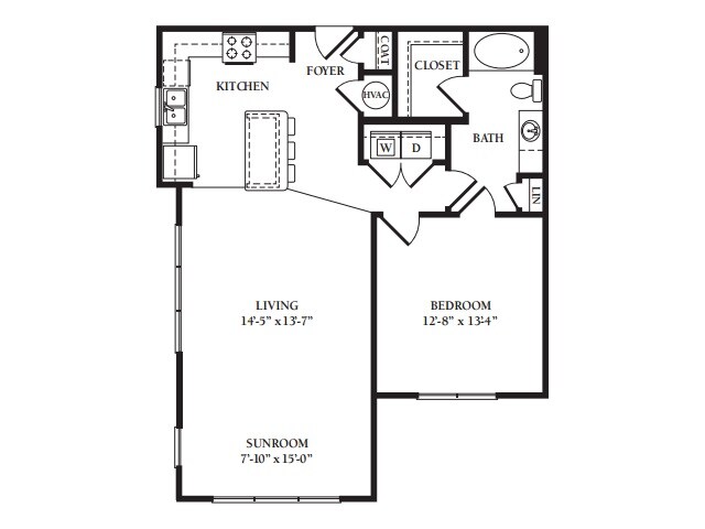 The Savannah with Sunroom - Floorplan 2 Apartment Unit: 12205Apartment Model: The Savannah with Sunroom1 Bedroom, 1 Bath, 726 sq ftAvailable November 29, 2025The Chatham with Sunroom