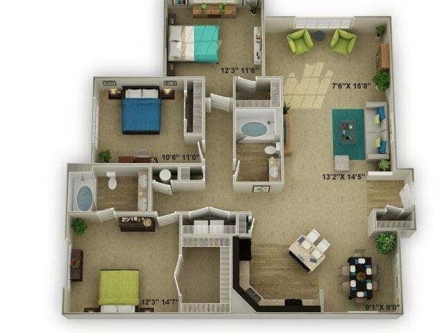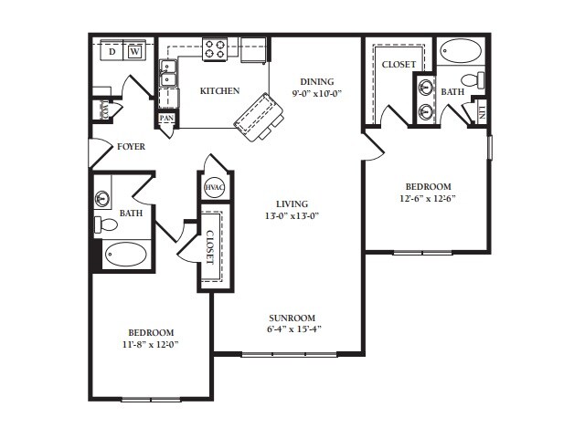 Apartment Model: The Cumberland with Sunroom2 Bedroom, 2 Bath, 1252 sq ftAvailable Now![]()