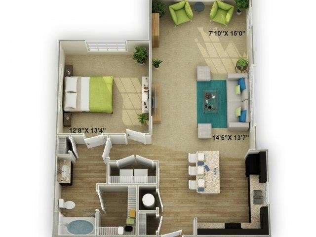 1 Bed, 1 Bath, 802 sq ftModel Gallery