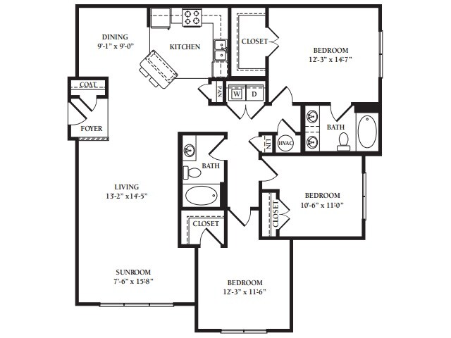 Apartment Model: The Chatham with Sunroom1 Bedroom, 1 Bath, 920 sq ftAvailable December 12, 2025![]()