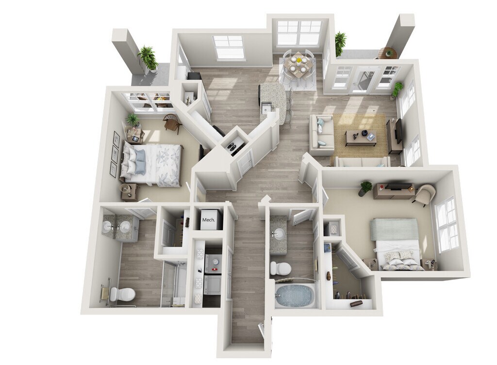 2 Beds, 2 Baths, 1086 sq ftModel Gallery