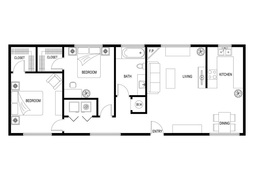 2 Beds, 1 Bath, 830 sq ftModel Gallery