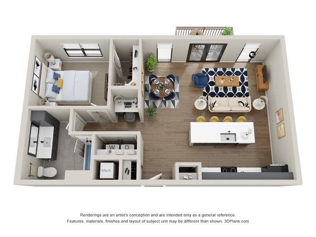 1 Bed, 1 Bath, 728 sq ftAvailable NowModel Gallery