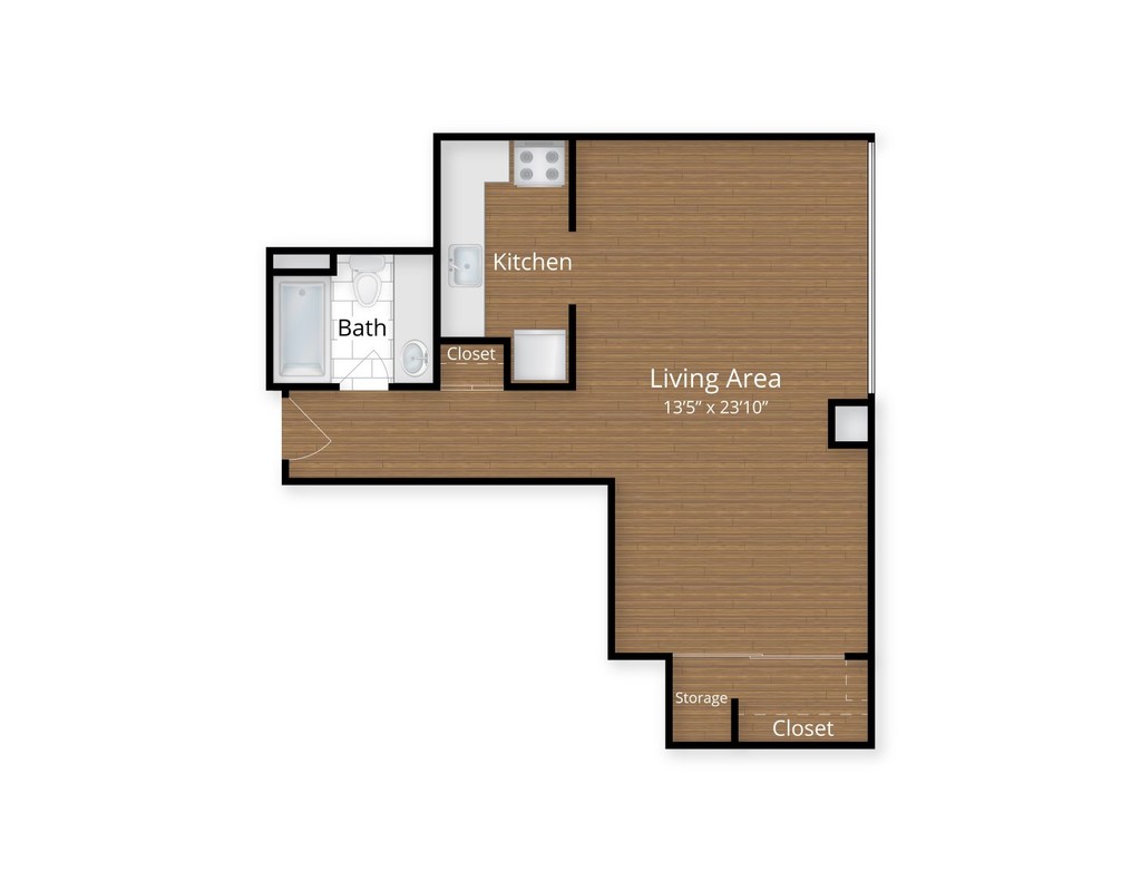 Studio, 1 Bath, 528 sq ftLargest StudioThis is the largest Studio at this PropertyModel Gallery