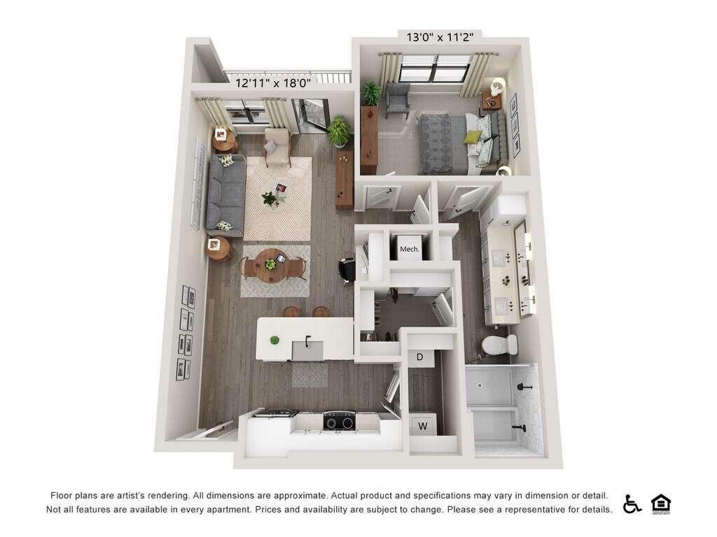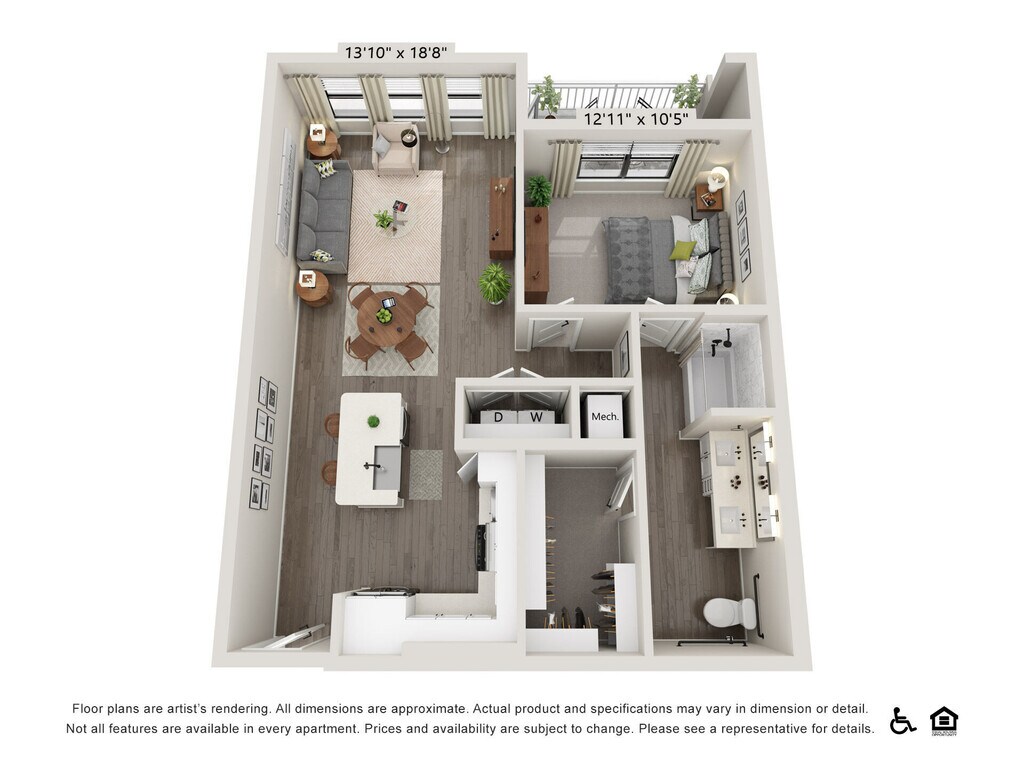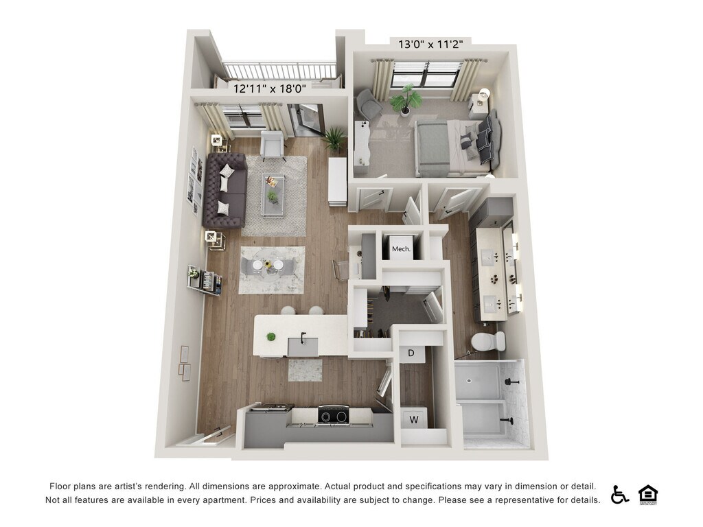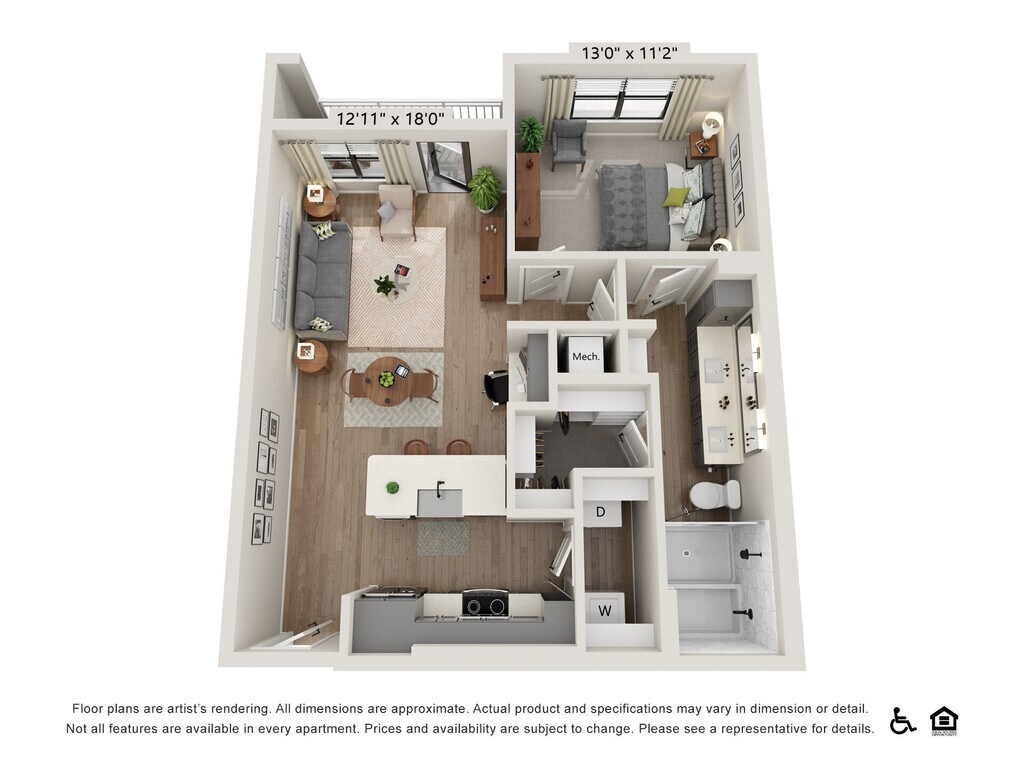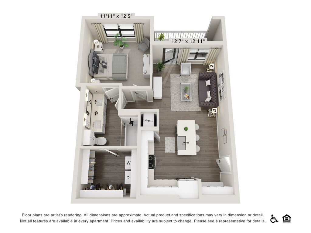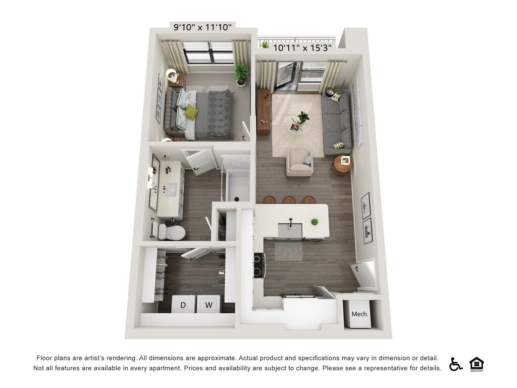 1 Bed, 1 Bath, 620 sq ftAvailable NowModel Gallery