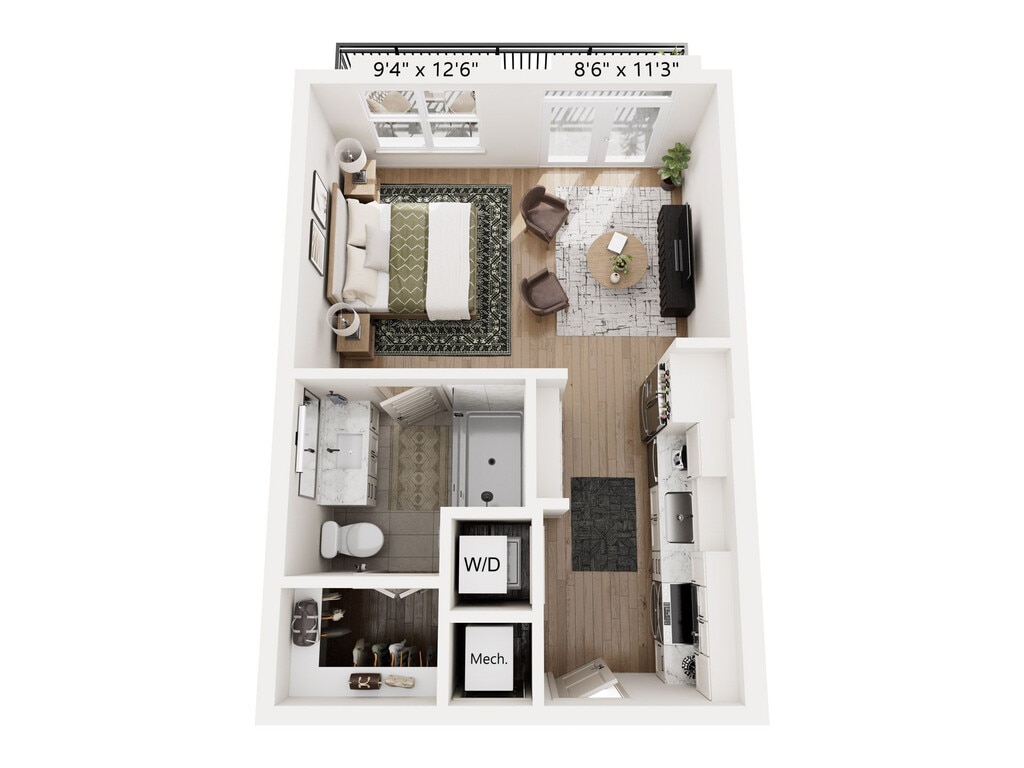 Studio, 1 Bath, 678 sq ftAvailable NowModel Gallery