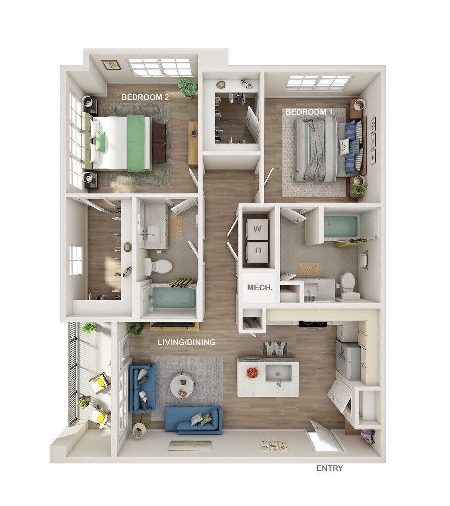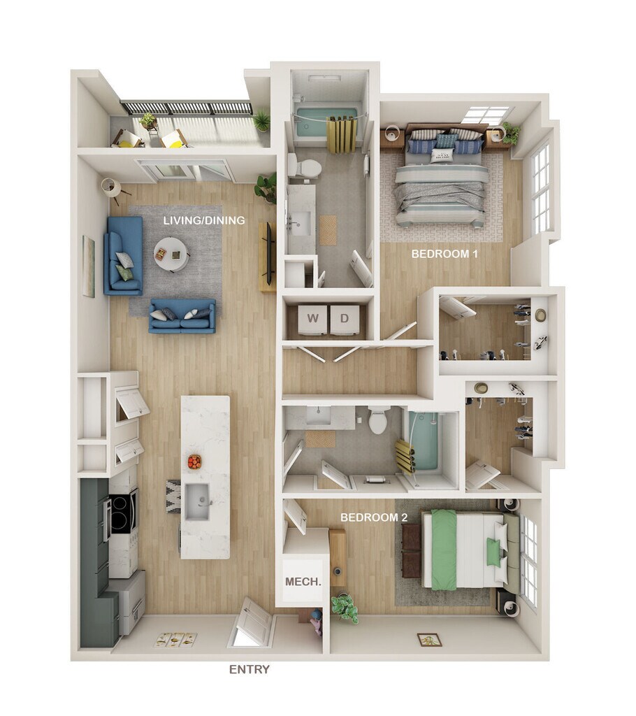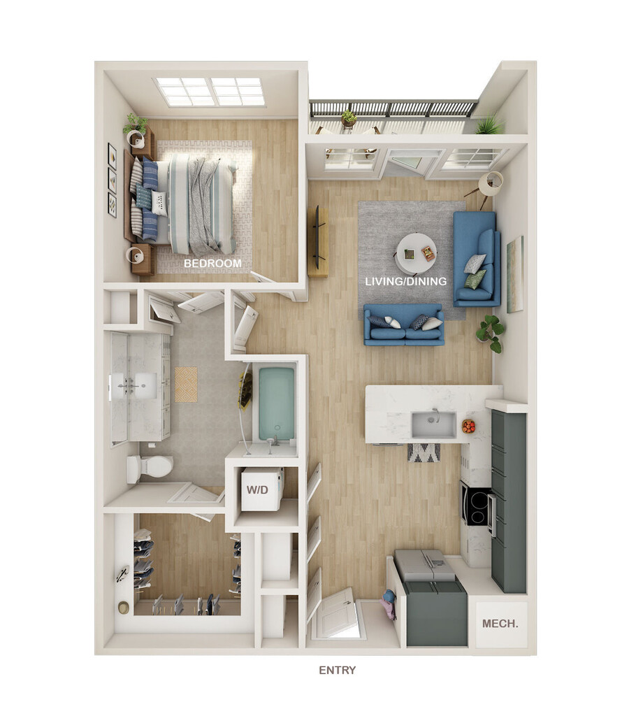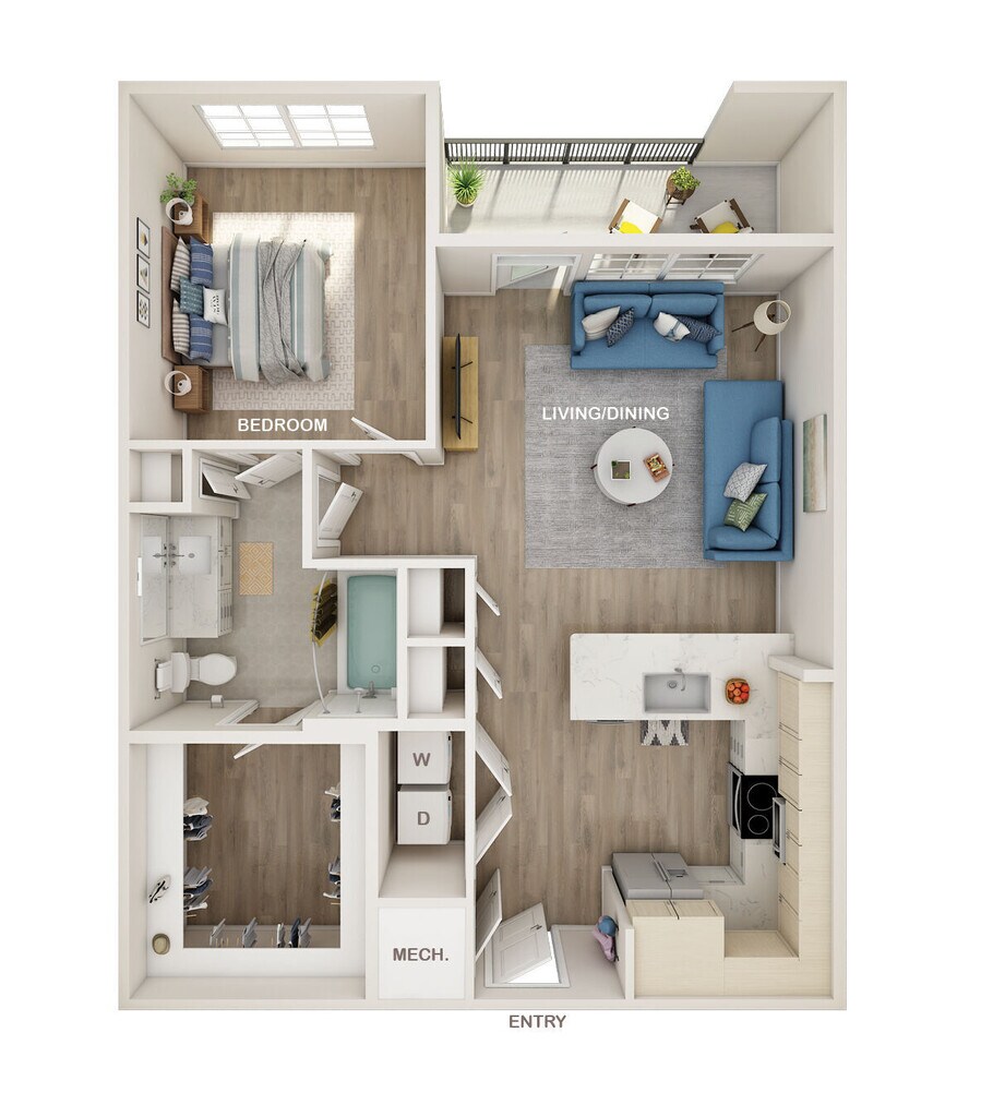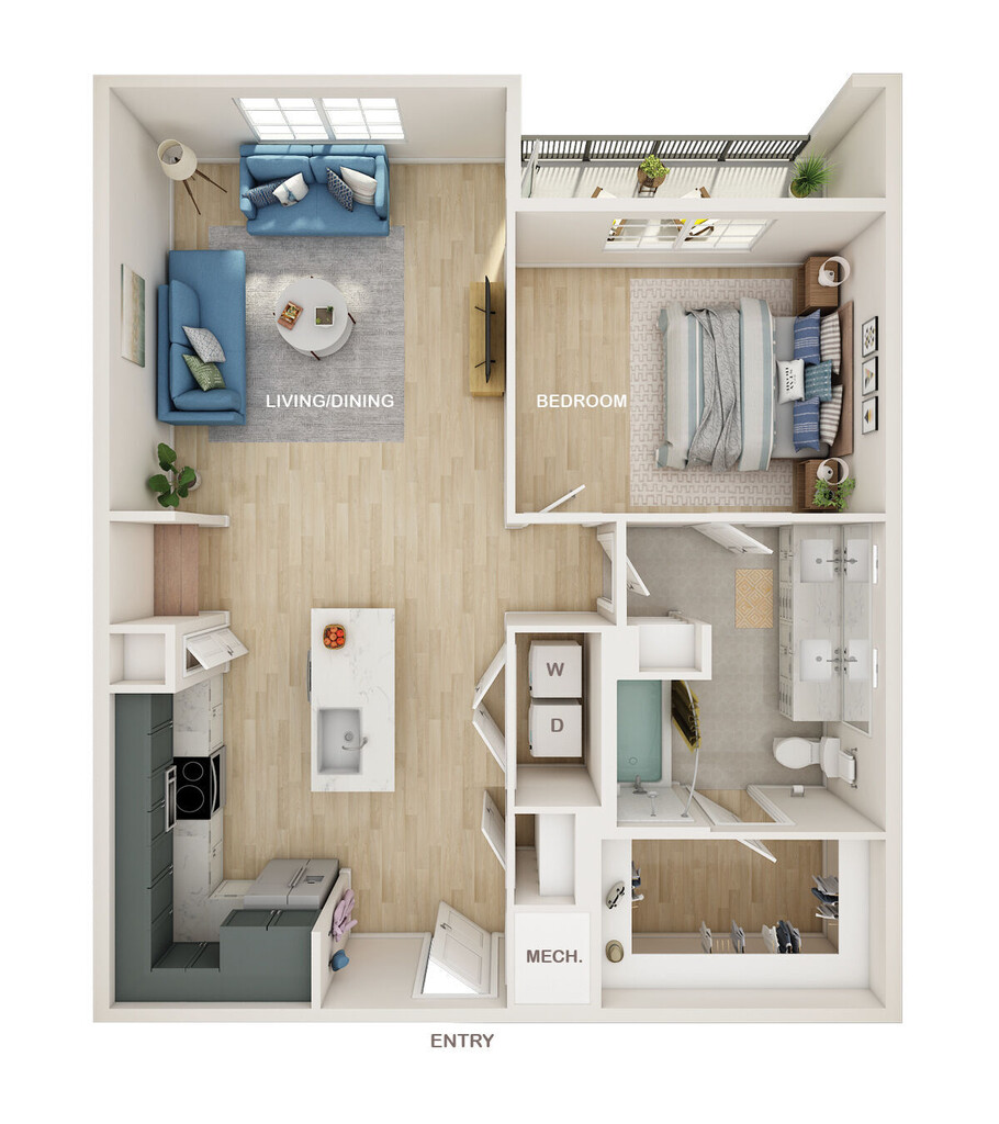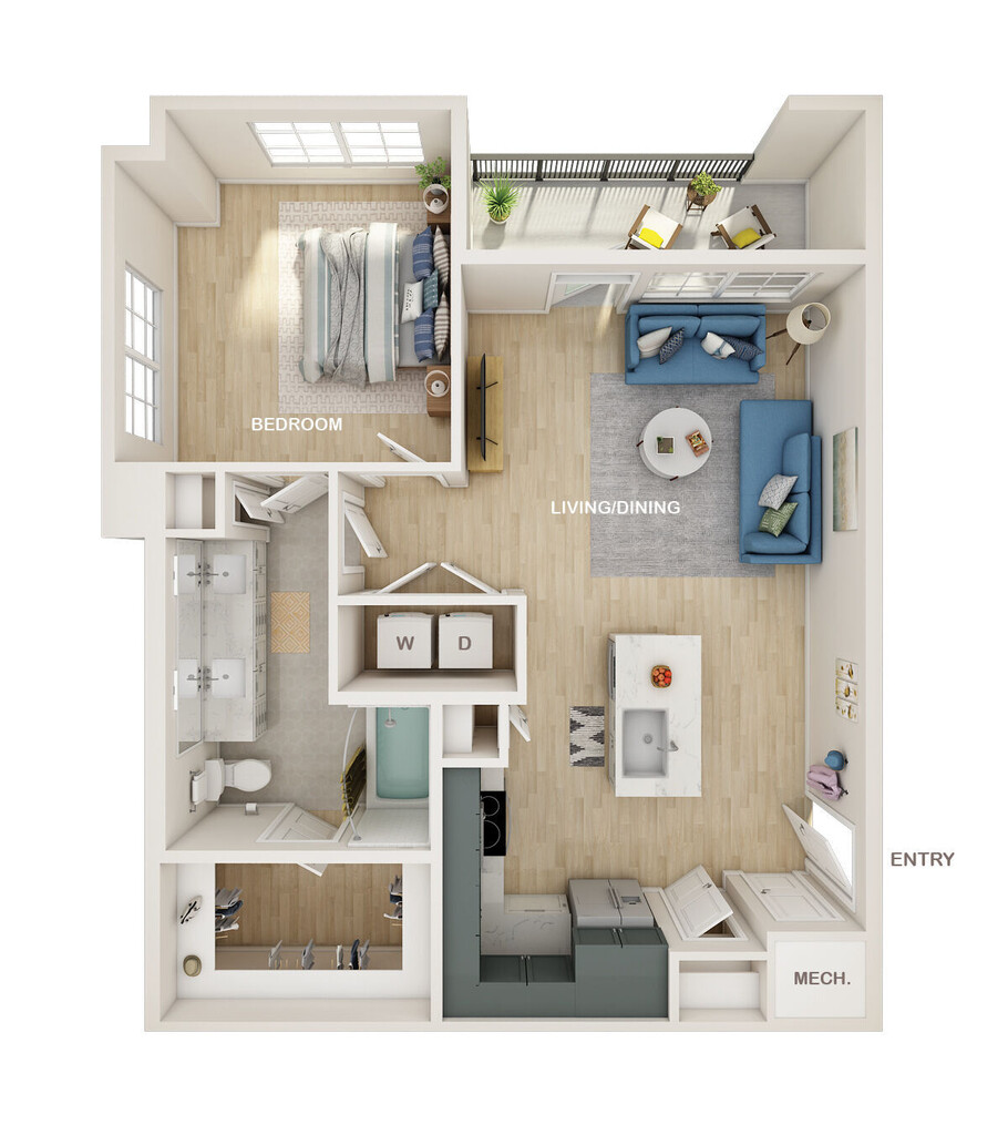 1 Bed, 1 Bath, 626-630 sq ftAvailable NowModel Gallery