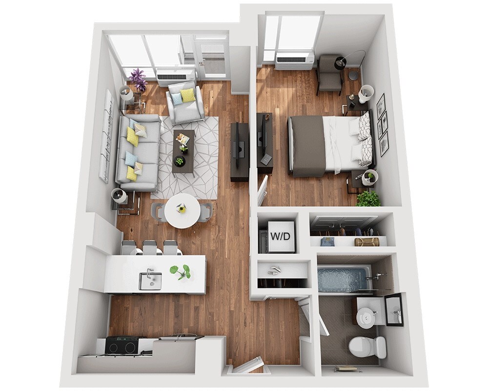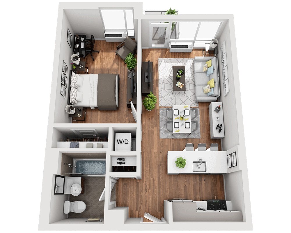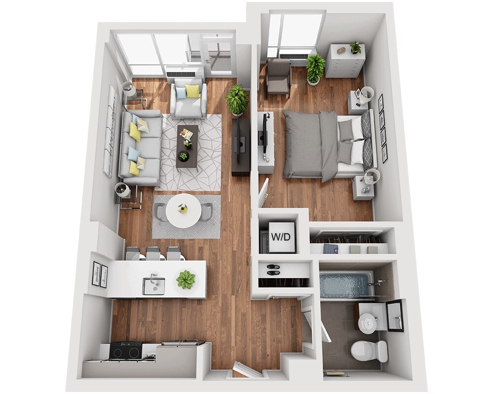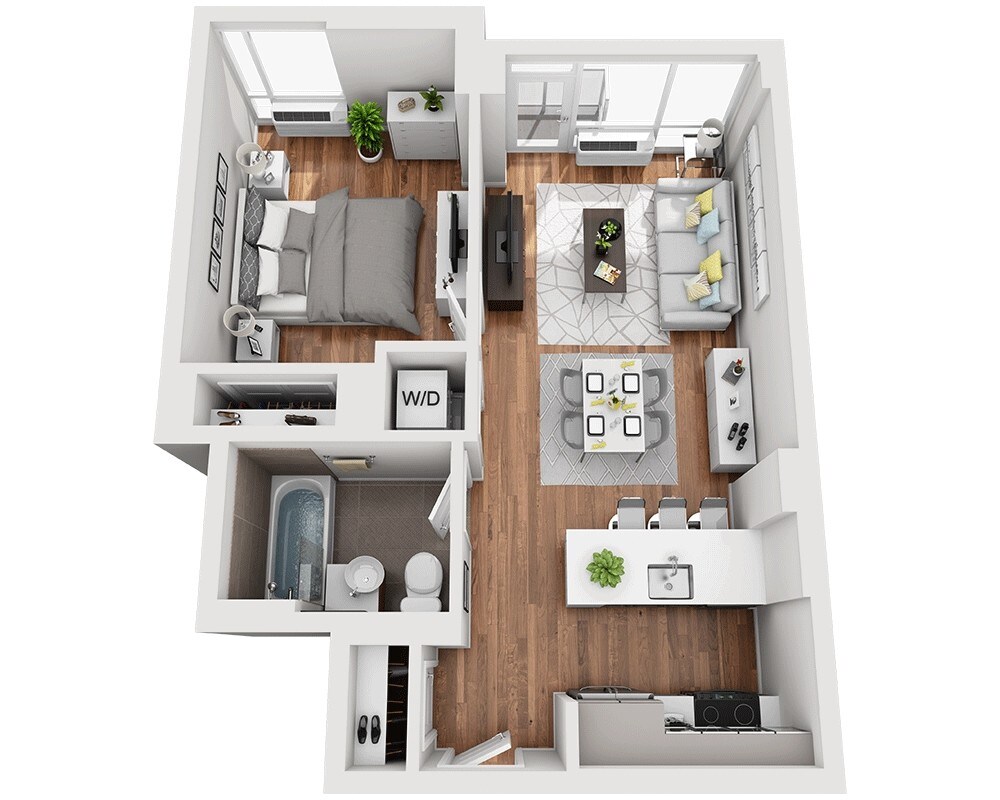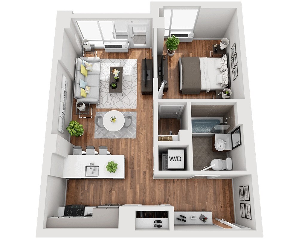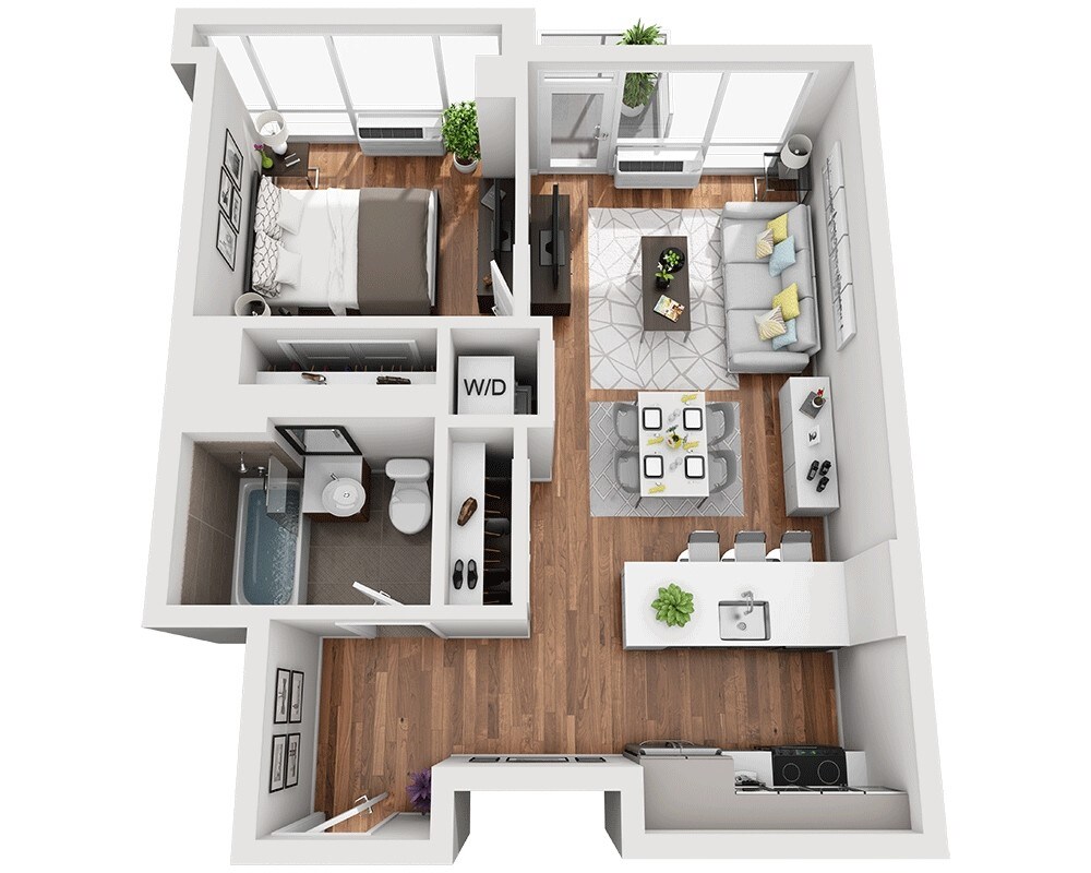 1 Bed, 1 Bath, 557 sq ftModel Gallery