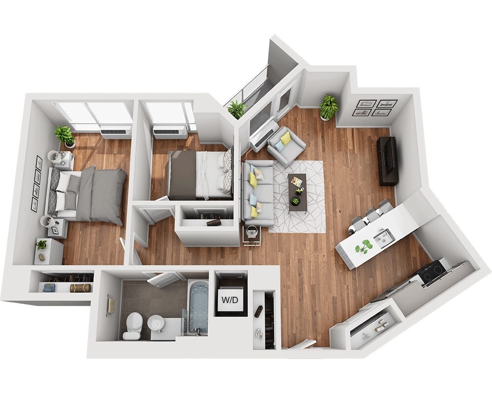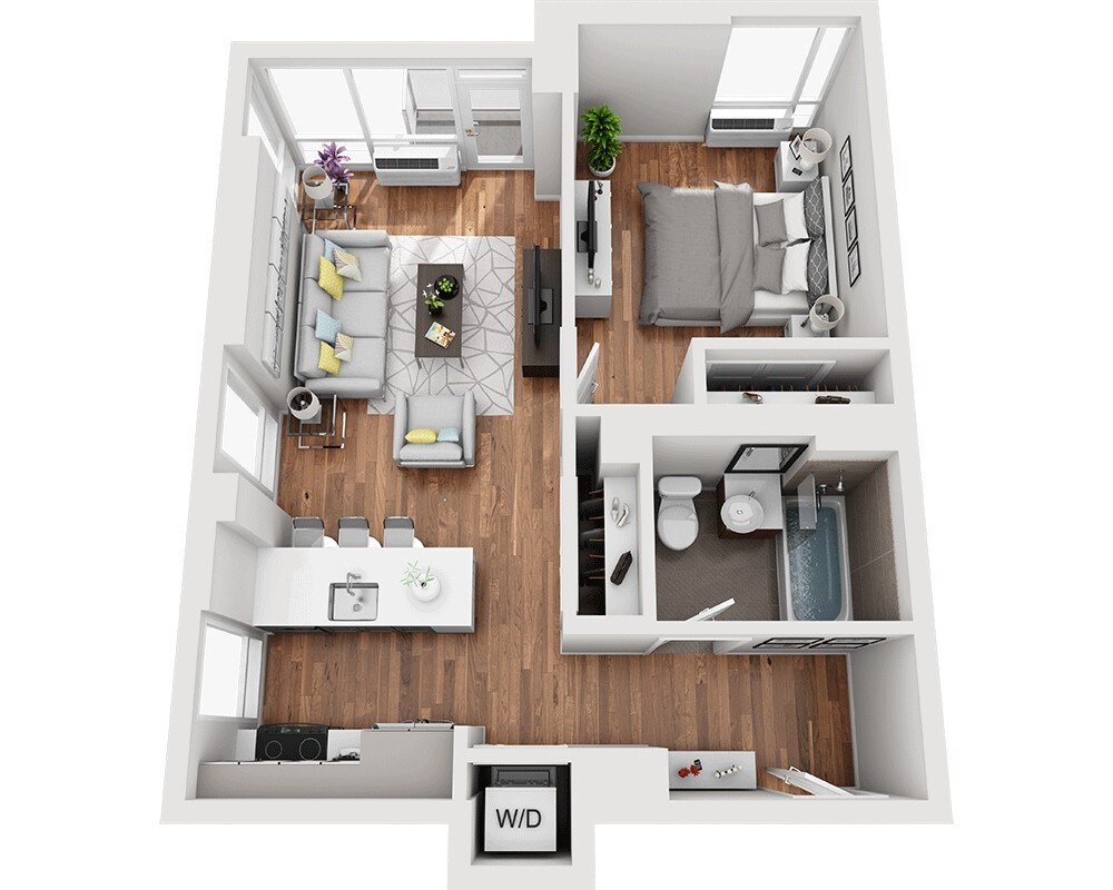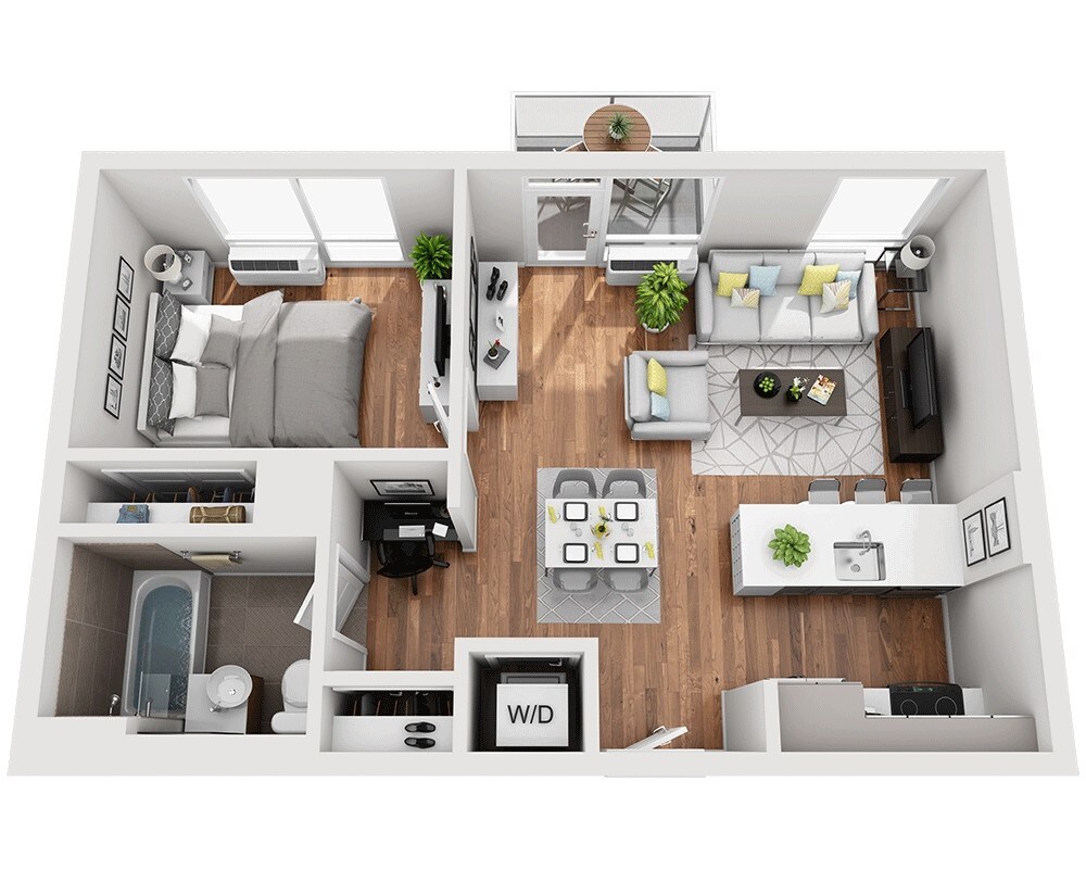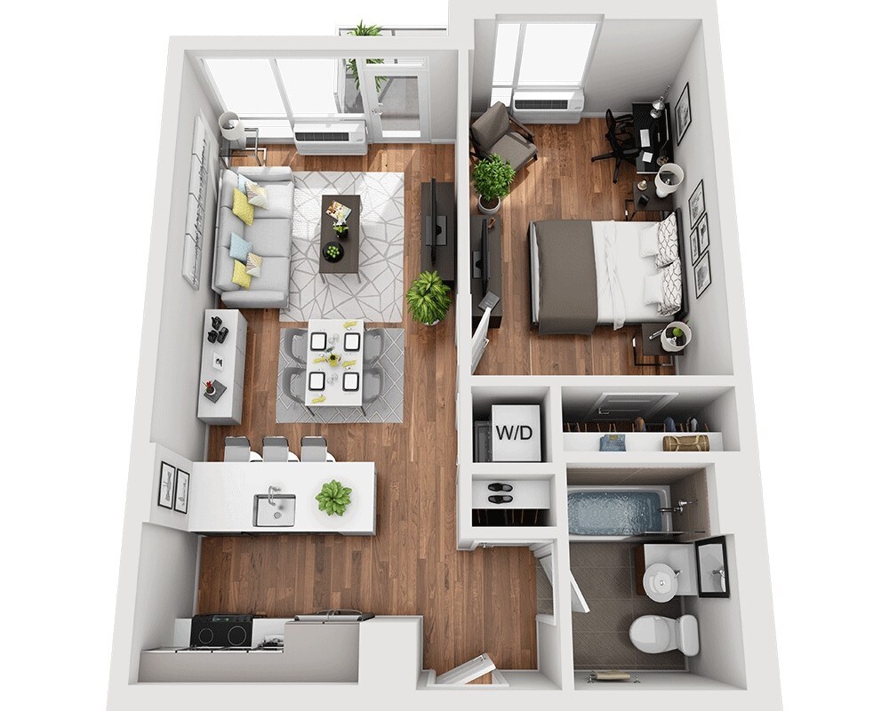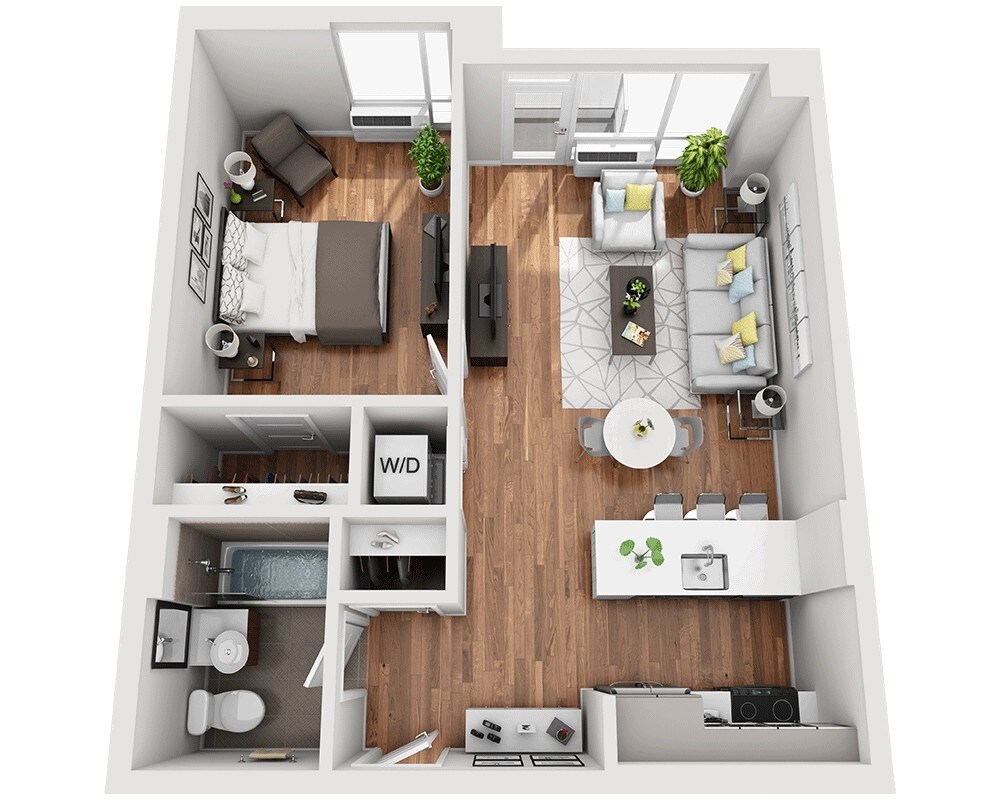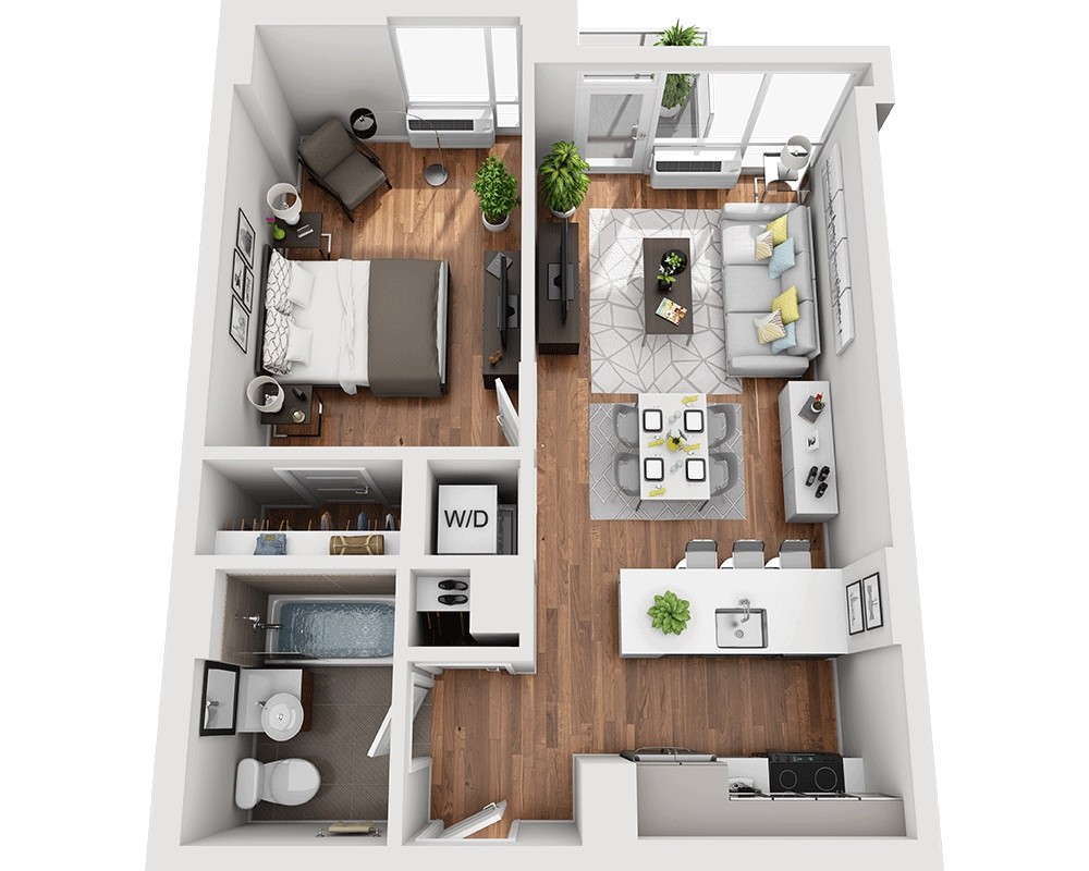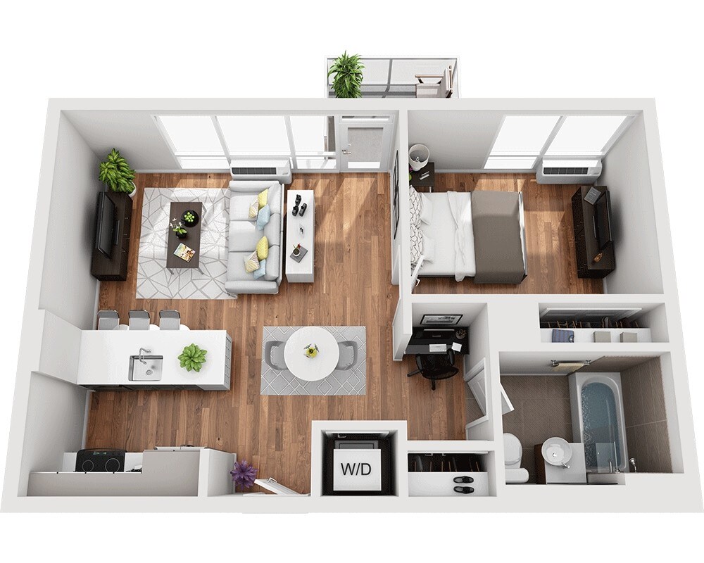 1 Bed, 1 Bath, 557 sq ftModel Gallery